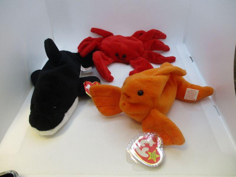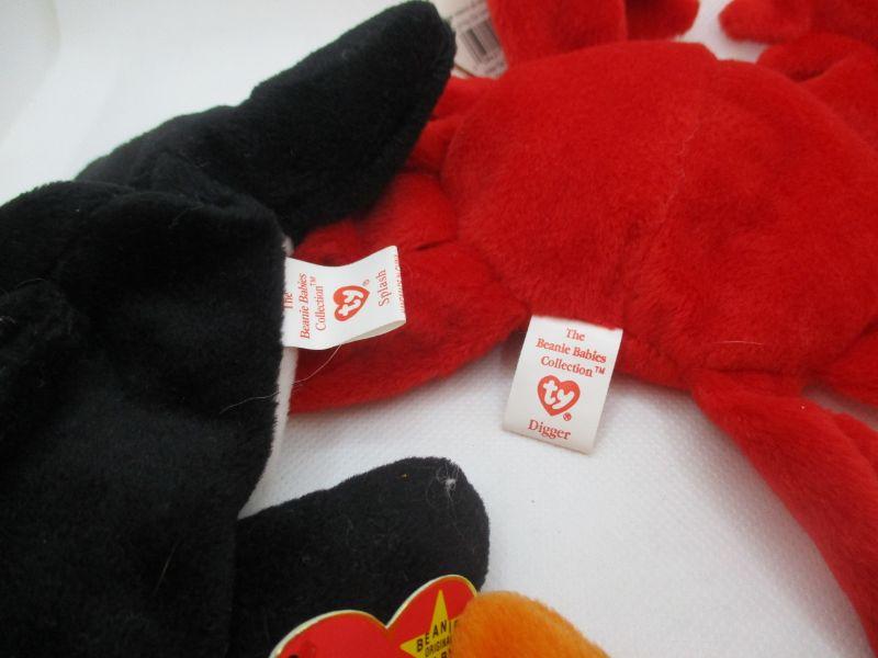 Lot 157 - Retired Beanie Babies Goldie, Digger, and Splash