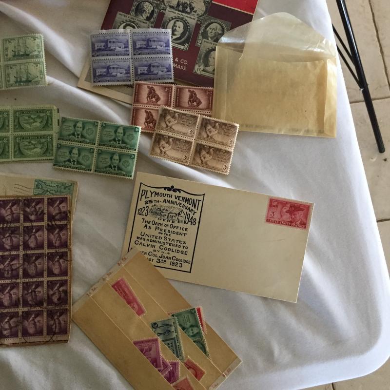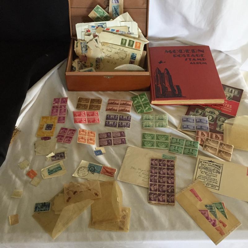 Assortment of Stamps Most US.New and Postmarked. Plate Blocks and More.