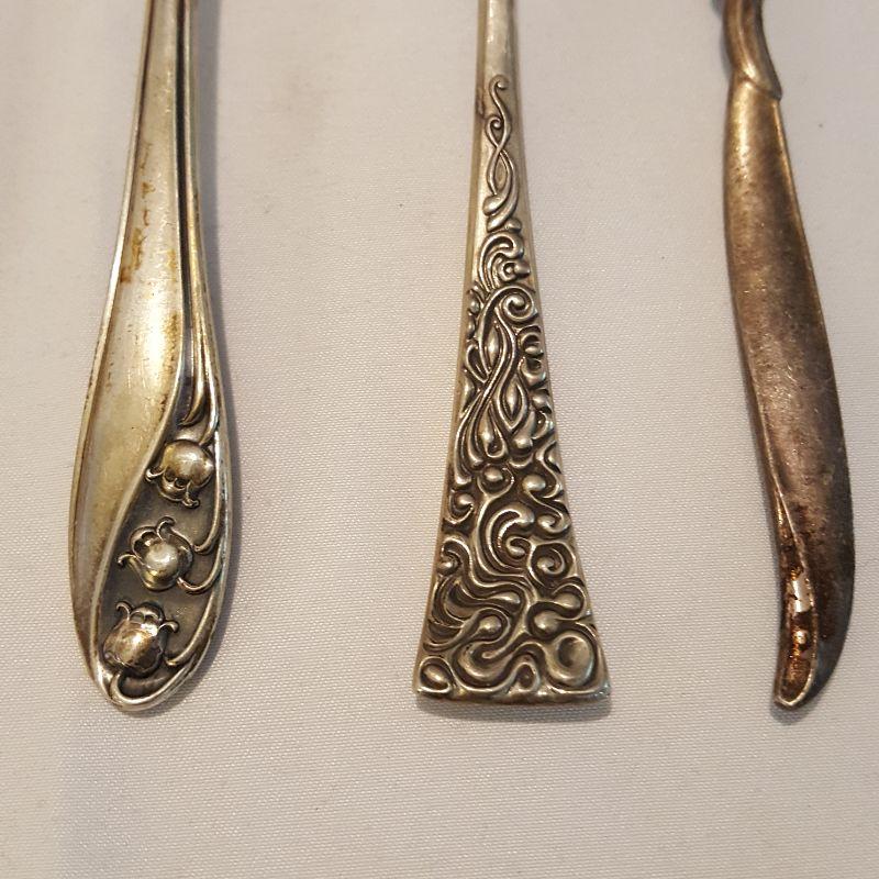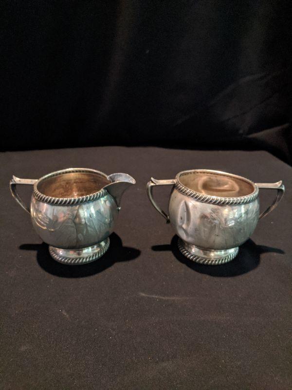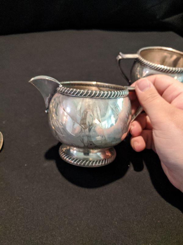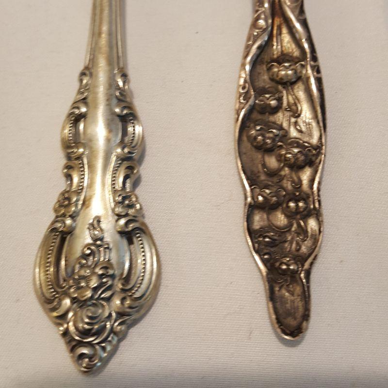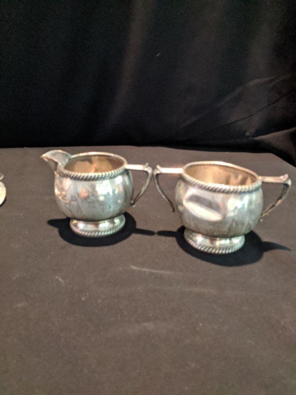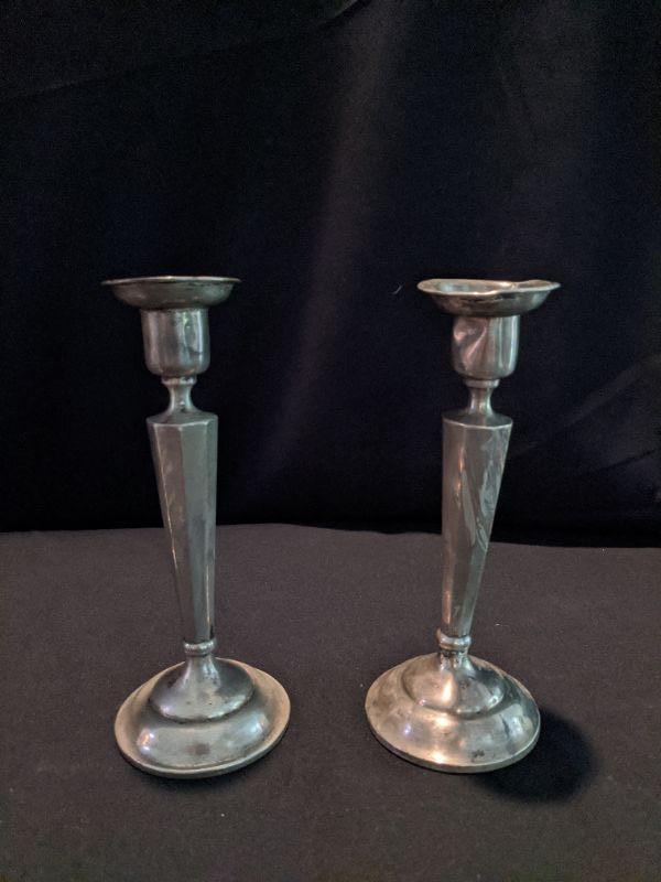 An assortment of sterling silver items. There are a couple of weighted candle holders, salt and pepper shakers, creamer and sugar set (one has a small dent) and an assortment of spoons and forks. See photos for more details.
