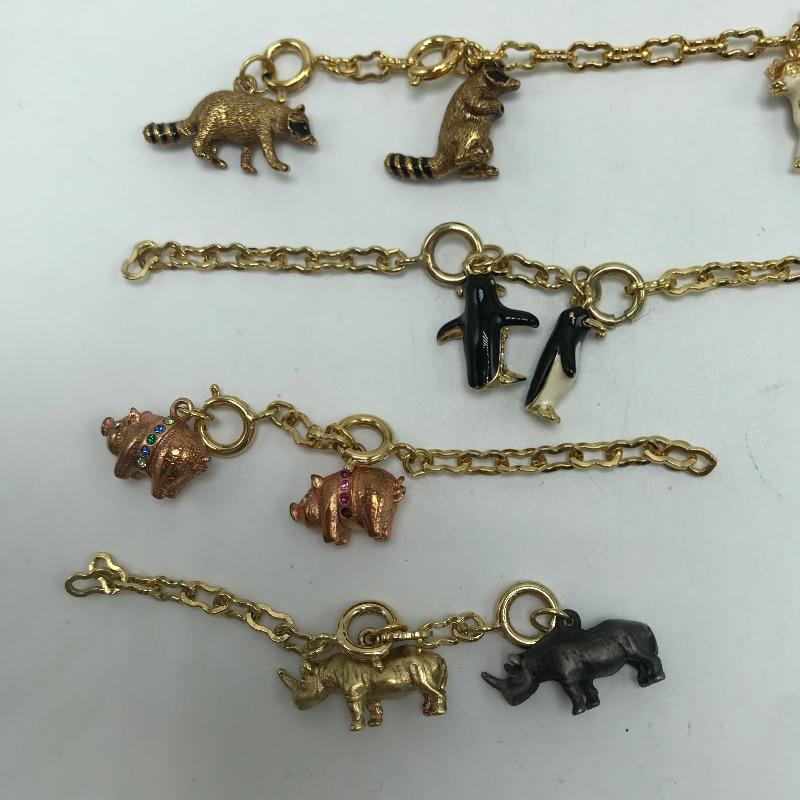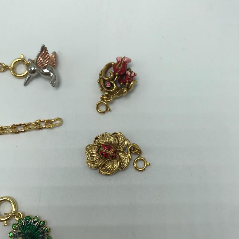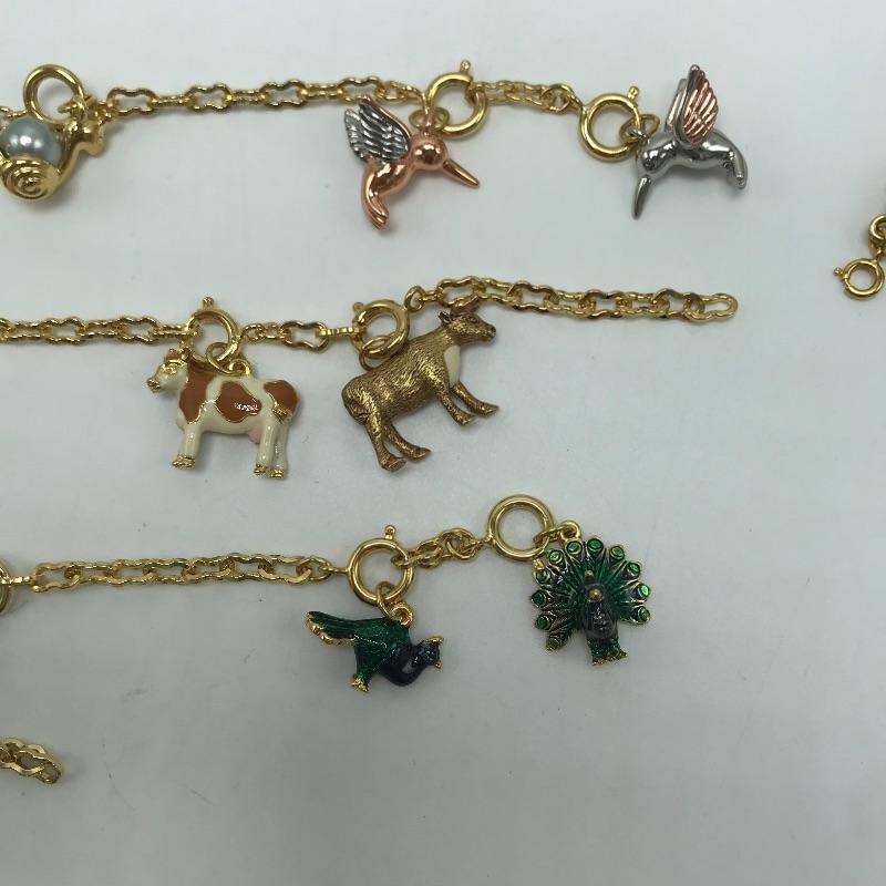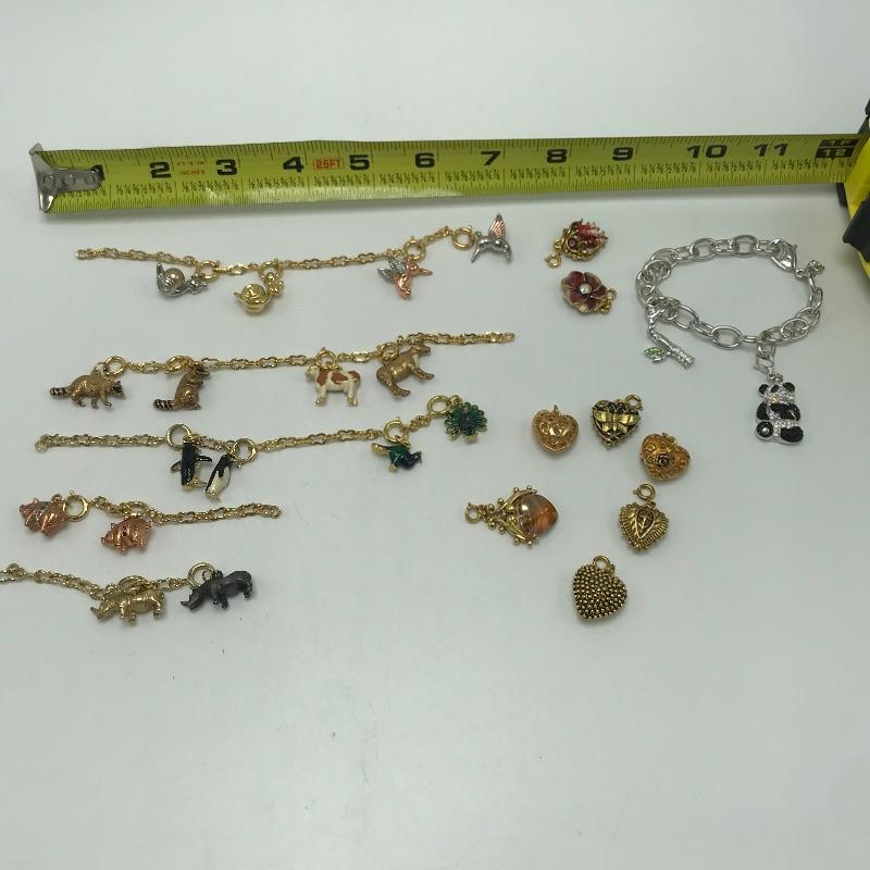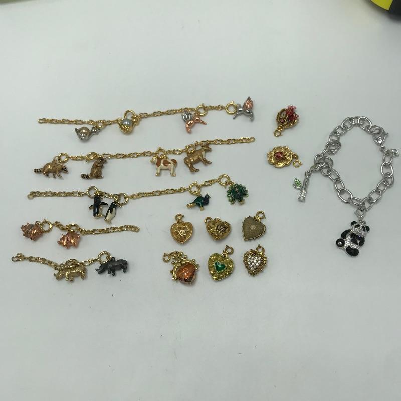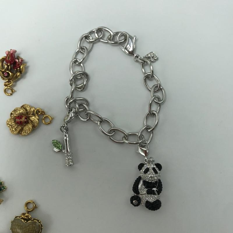 Lovely panda and bamboo silver colored charm bracelet with the signature Swarovski swan mark. Lot also includes peacocks, rhinos, hummingbirds and more charms to add to your bracelets! Two cute snails incorporate pearls into their design. No known markings on other charms. See photos.
