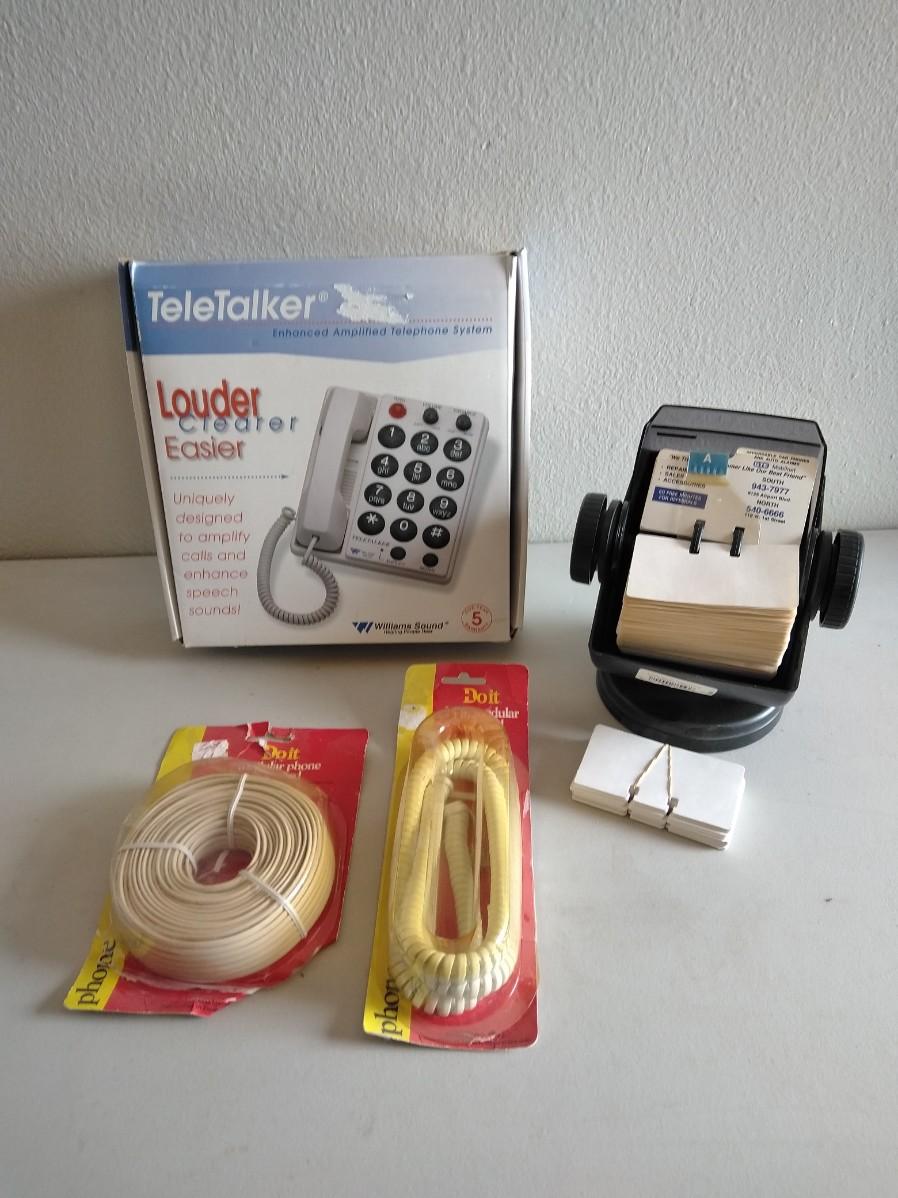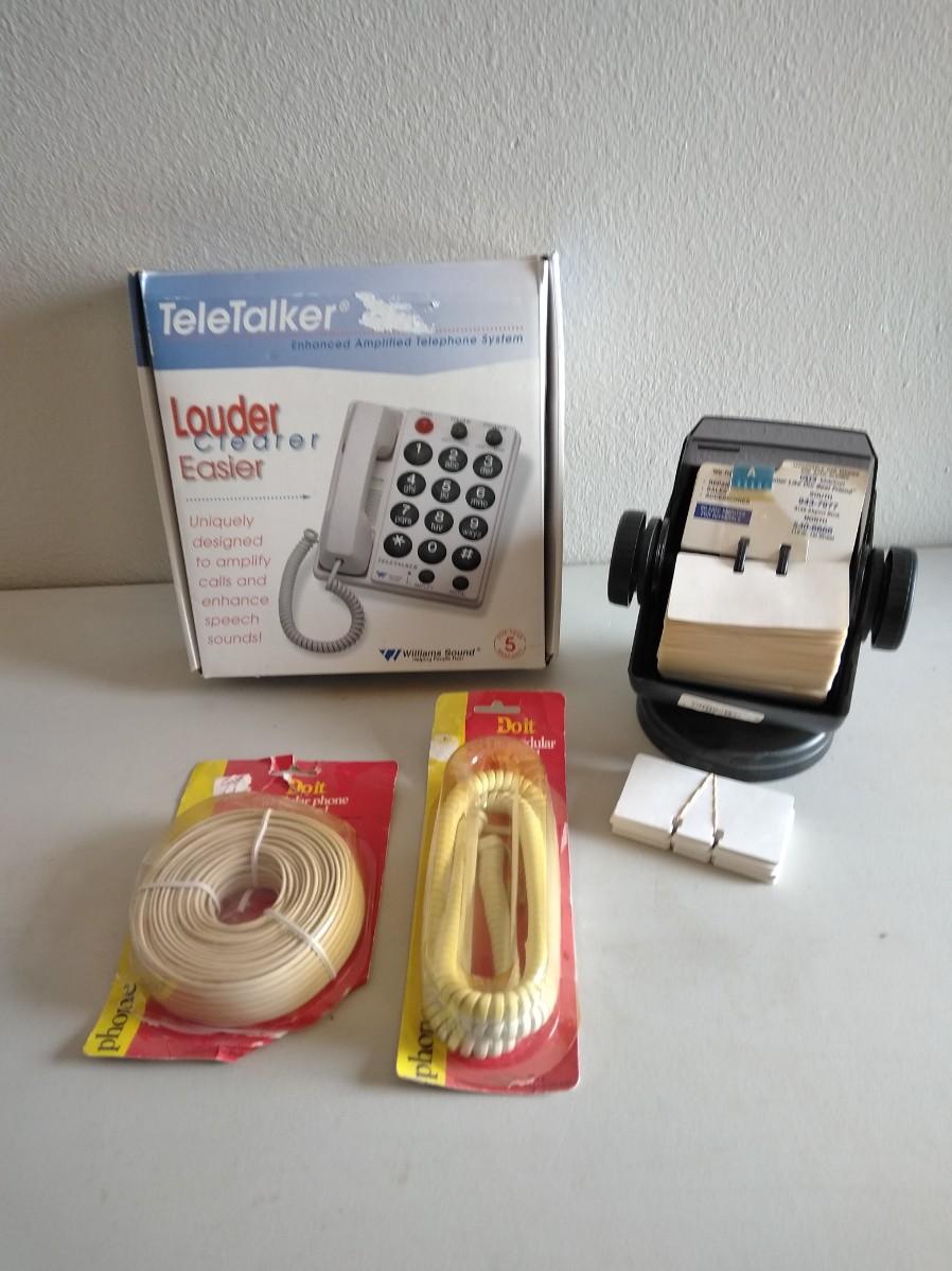 TELETALKER LARGE BUTTON, LOUDER, CLEARER, EASIER TELEPHONE, POLODEX, AND PHONE CORDS.