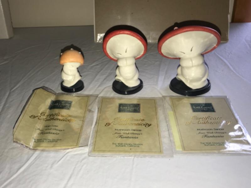 Classic Walt Disney classic collection Mushroom Dancer 4-1/2” tall, Mushroom Dancer 4” tall and Hop Low 3” tall. All come with certificate of authenticity