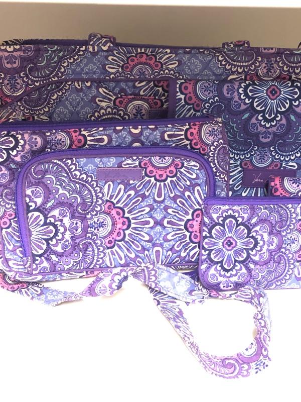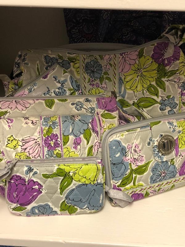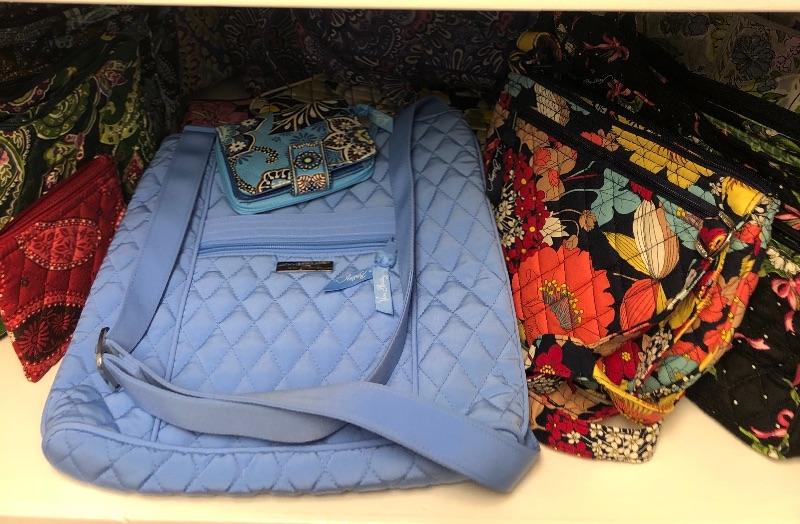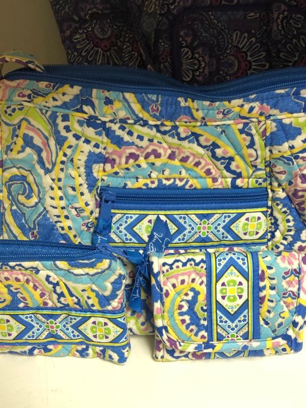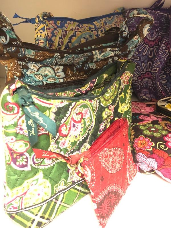 Wide variety of colors and sizes and accessories in this Very Bradley assortment. Large purses w/smaller shoulder bags, and coin purses in sets, and some stand alone bags and accessories. All are in new to good condition.