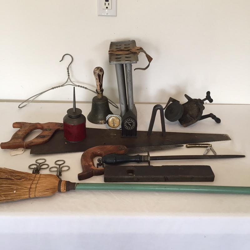 Vintage collection includes candle maker , bell , oil can , thermometer, hand grinder , sharpener and more.