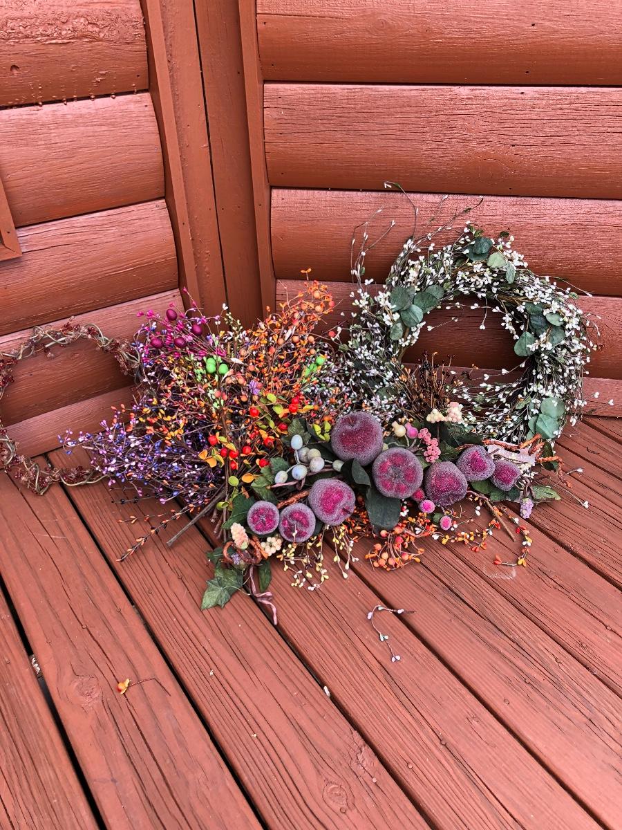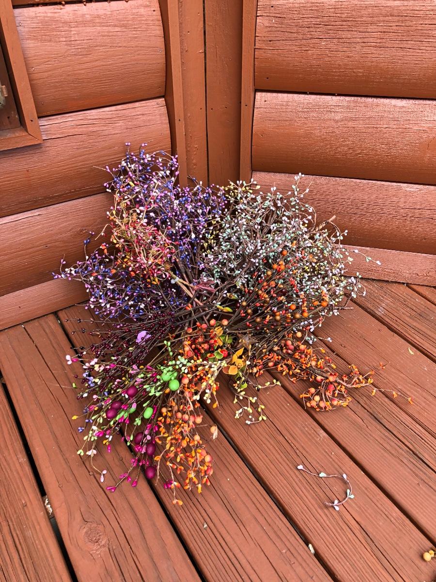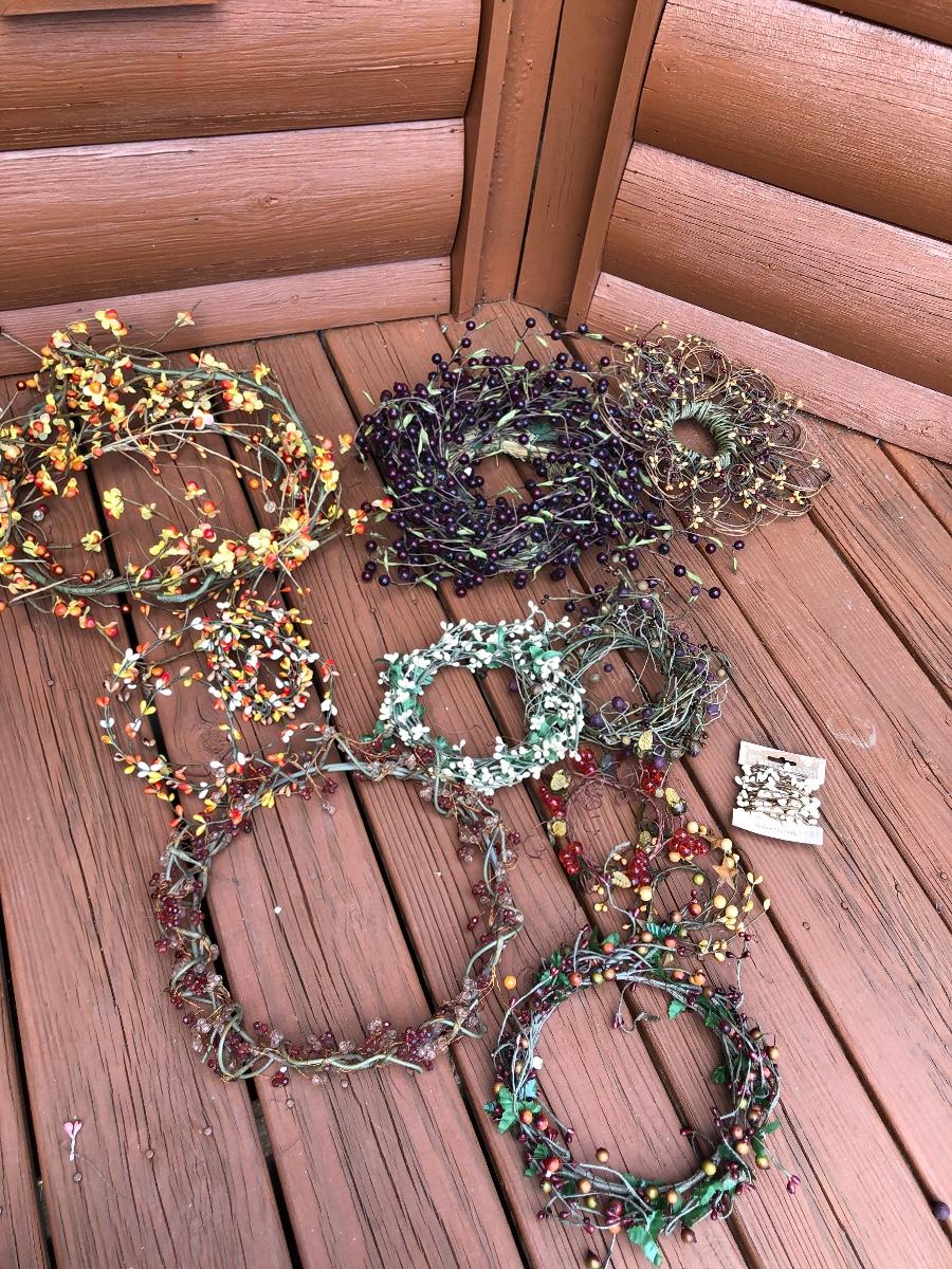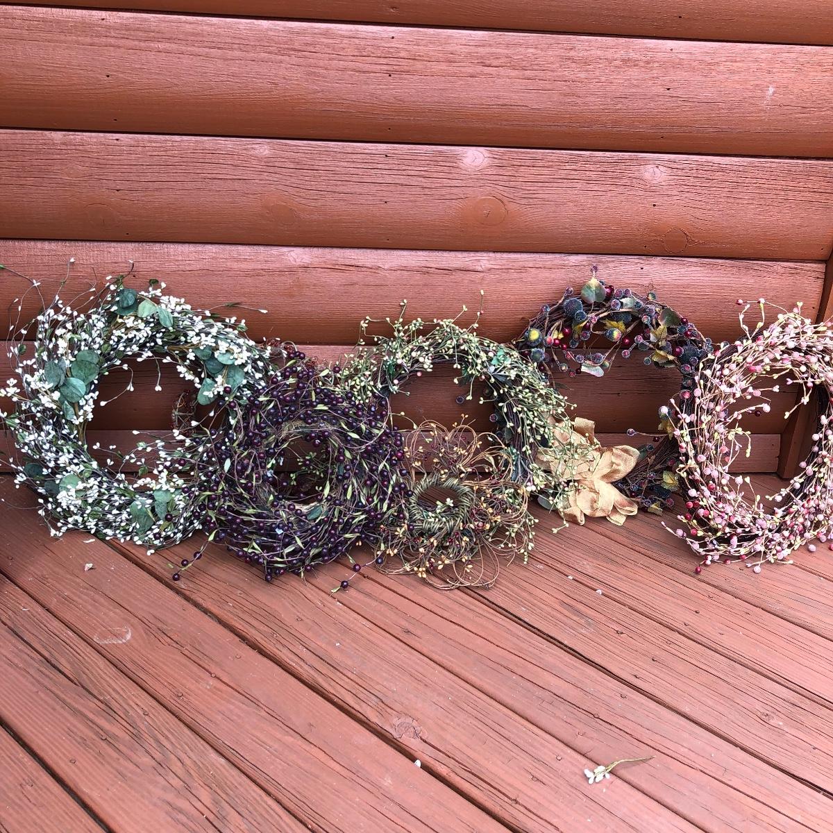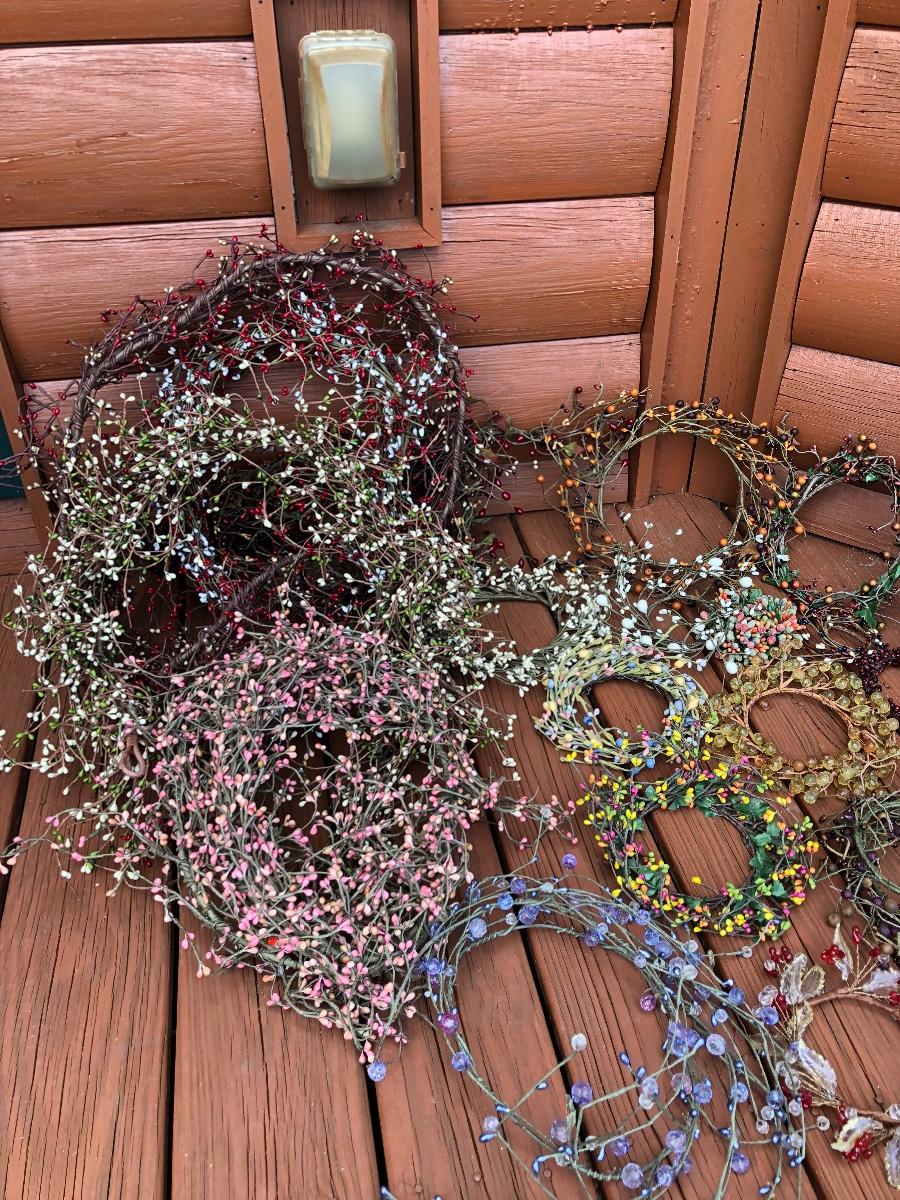 Add some life to your home with this array of colorful faux wreaths, garland and sprigs. Lot includes wreaths with glass, plastic and other materials. Also includes garland and sprigs in plastic beads, glass and more. Largest wreath measures 13”D.