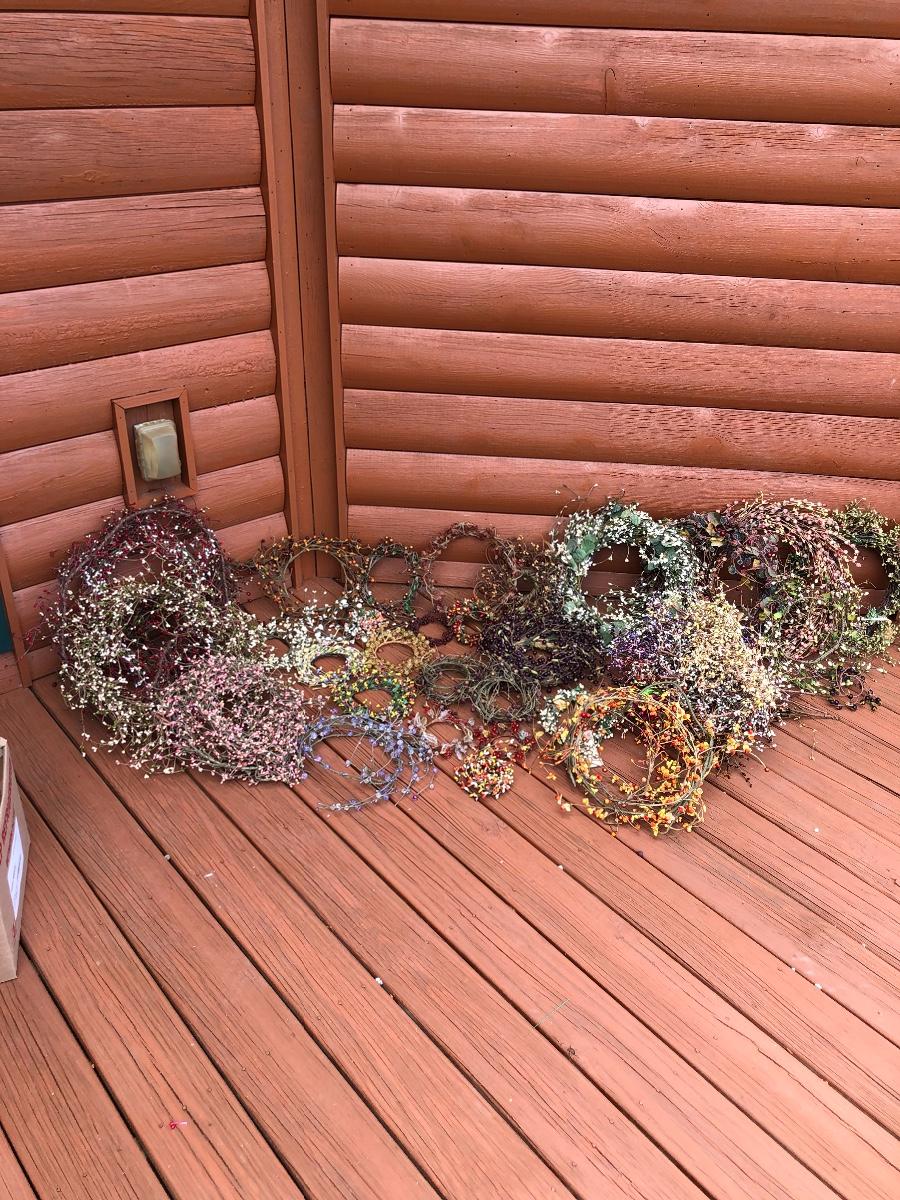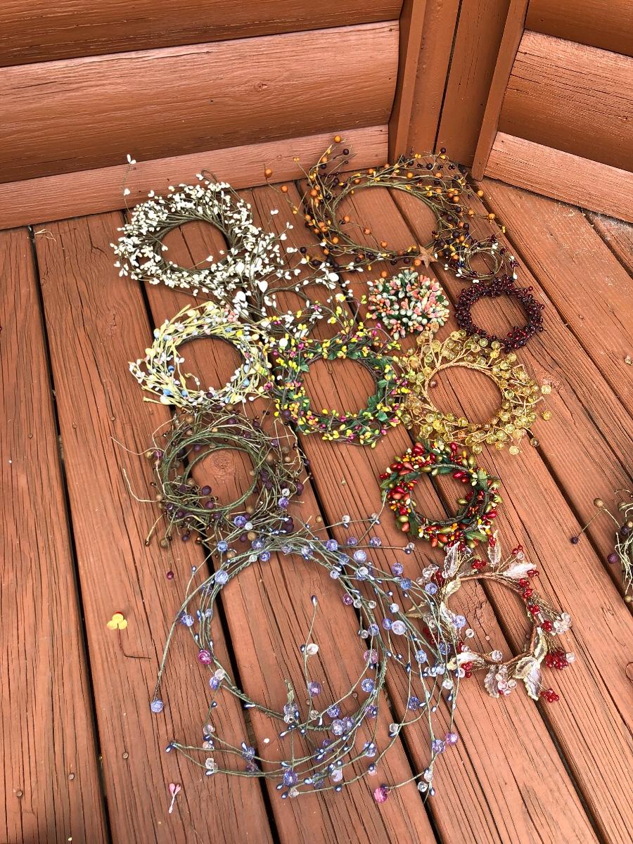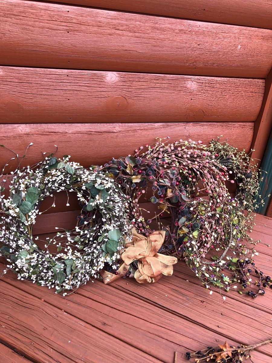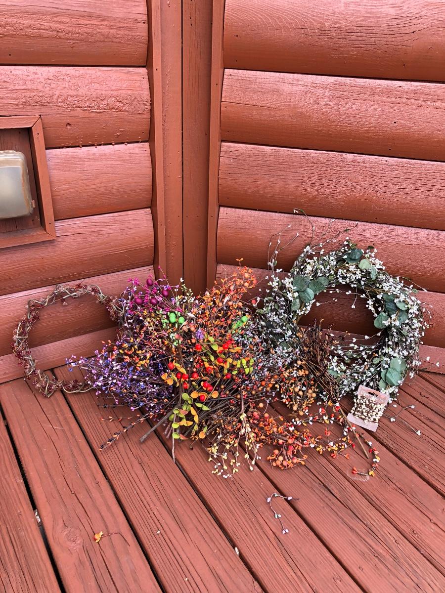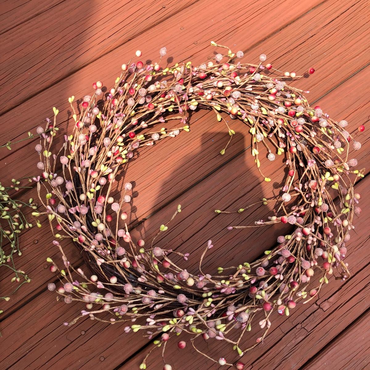 Add some life to your home with this array of colorful faux wreaths, garland and sprigs. Lot includes wreaths with glass, plastic and other materials. Also includes garland and sprigs in plastic beads, glass and more. Largest wreath measures 13”D.