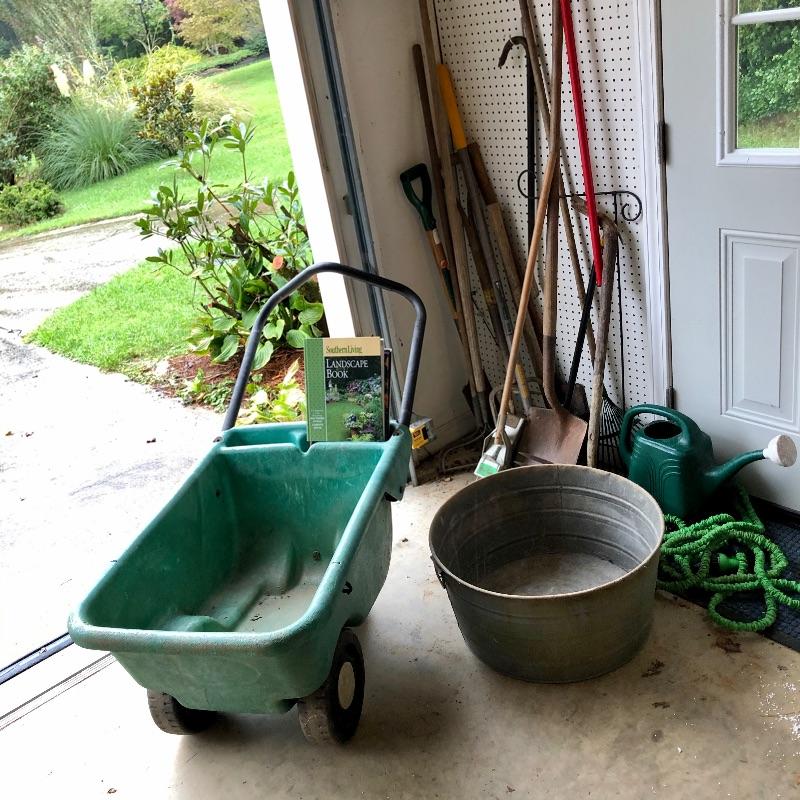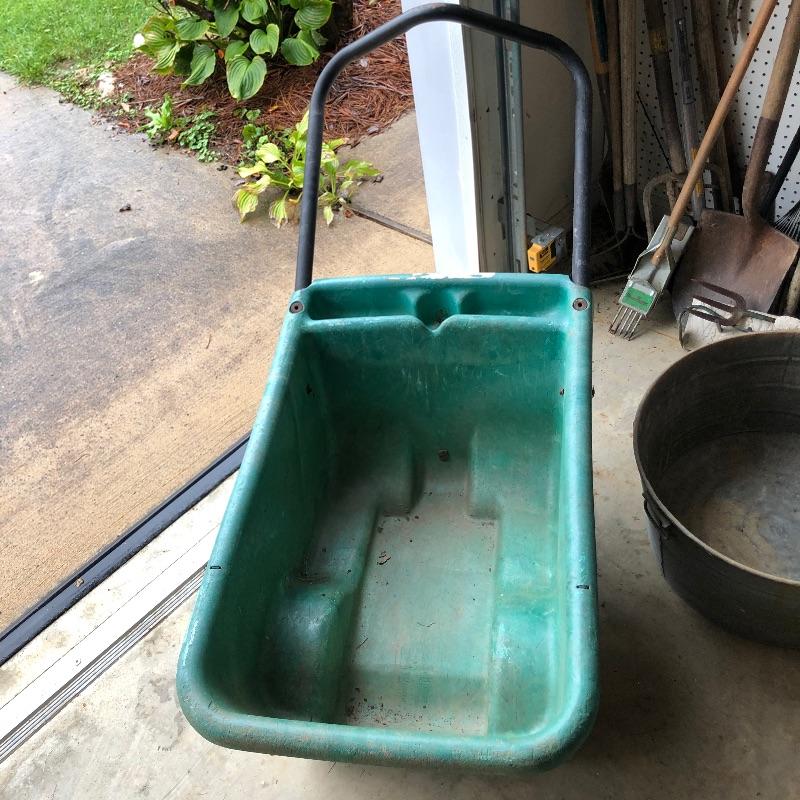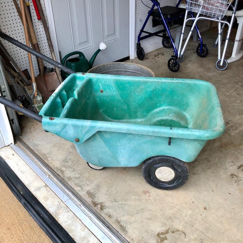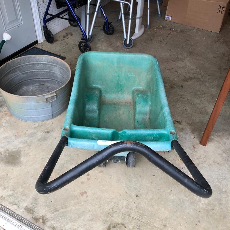This Scott’s garden cart is a handy size being not too big nor not too small. It also has plastic wheels so you won’t have to worry about flat tires. It comes with a large galvanized tub, a few books and lots of tools. See images for everything that is included