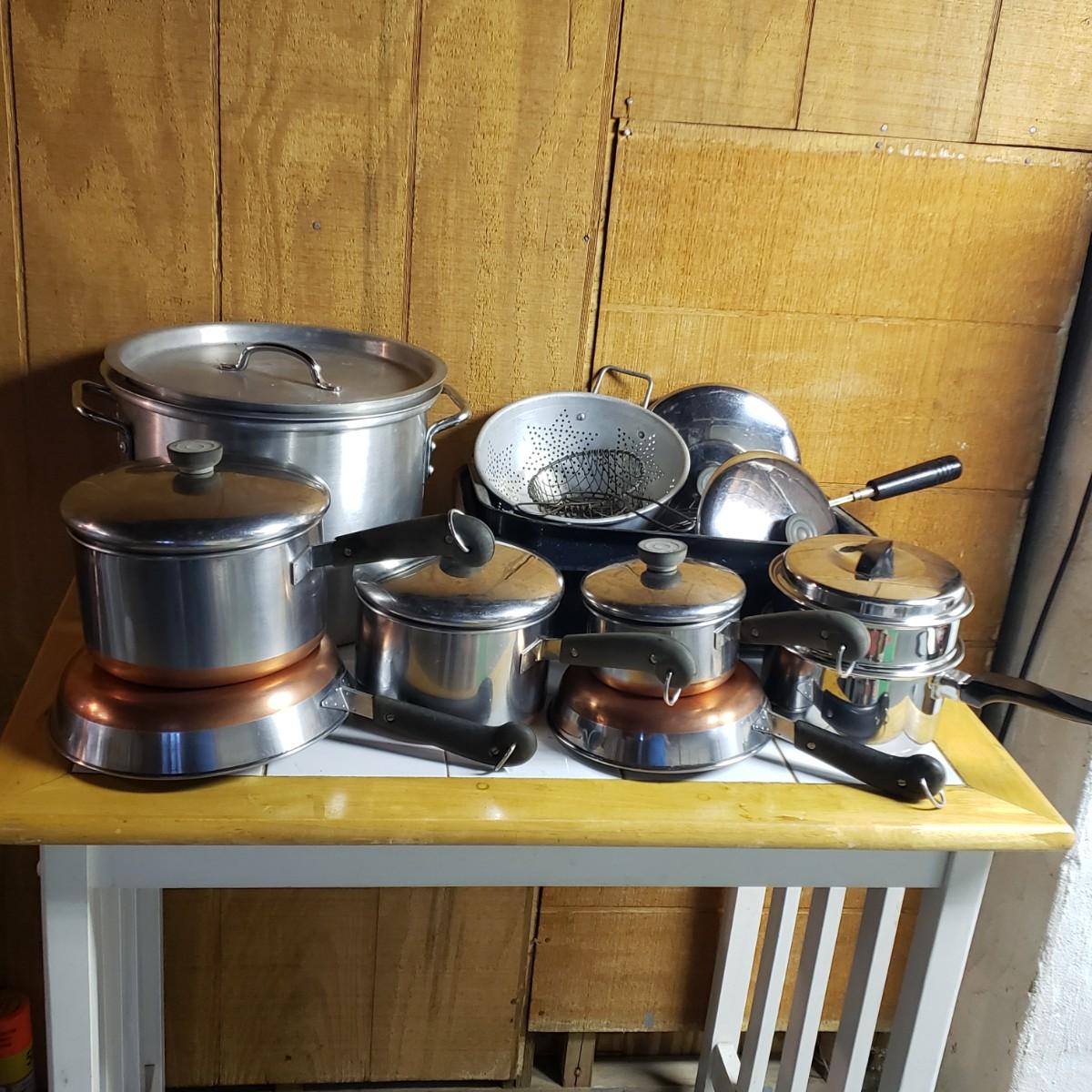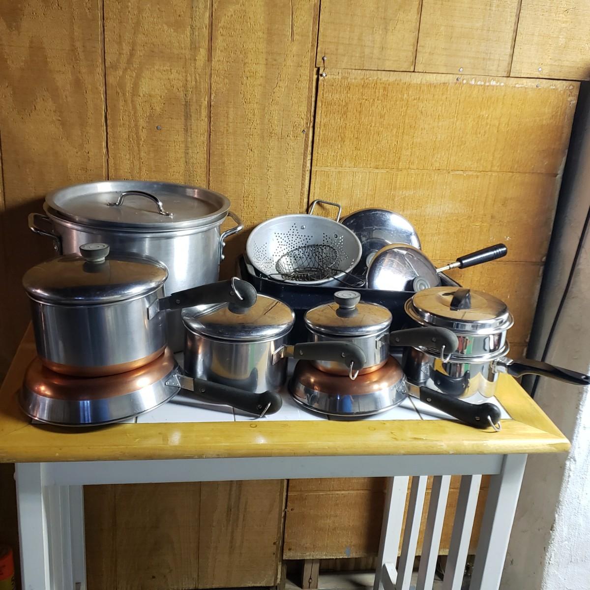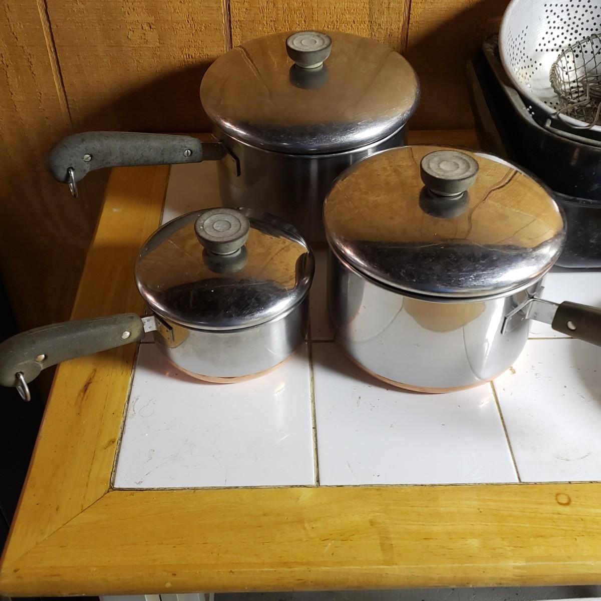 LOT 157B: Assorted Pots & Pans; Revere Ware Copper Bottom & More