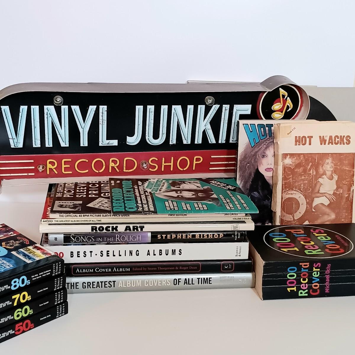 LOT 157B: Vinyl Junkie Sign w/ Books on Record Collecting