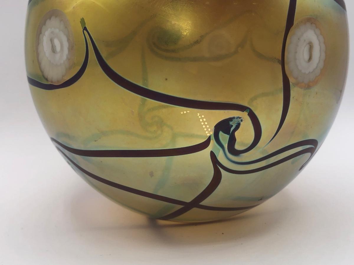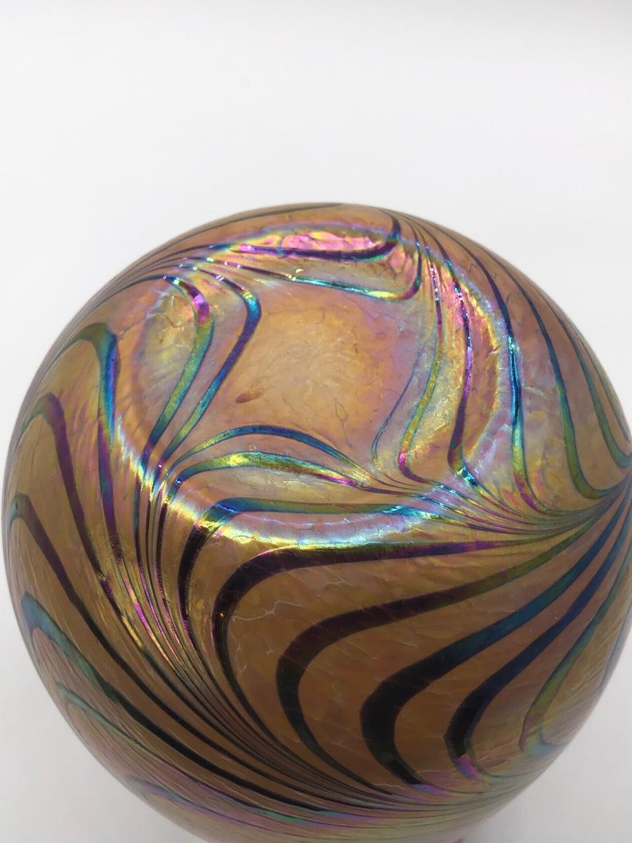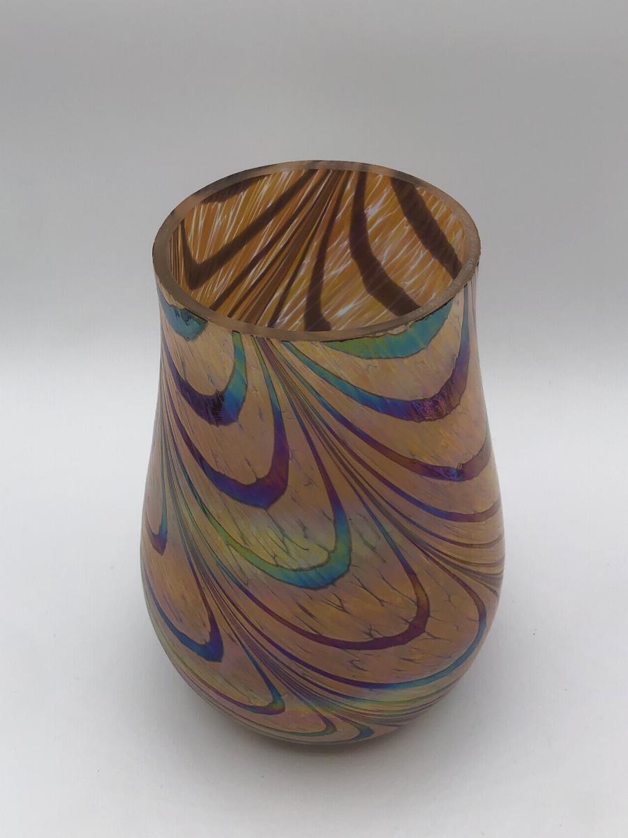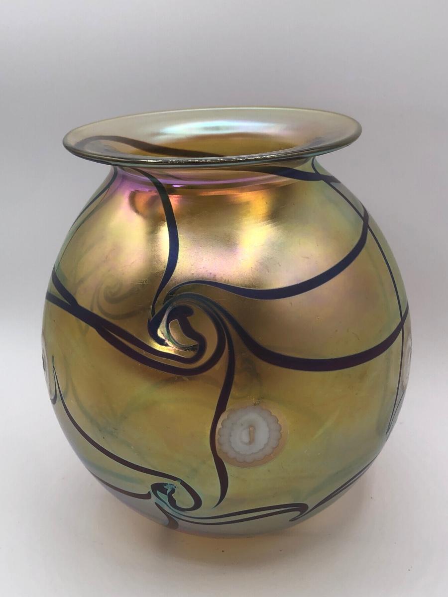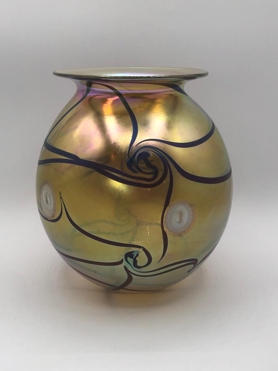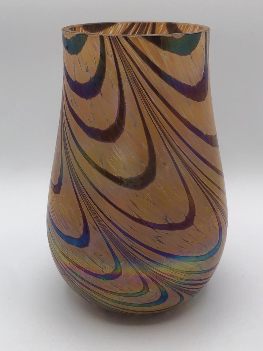LOT 157F: Signed Robert Eickholt Iridescent Lustre Ribbon Vase & Art Glass Iridescent Swirl Vase
