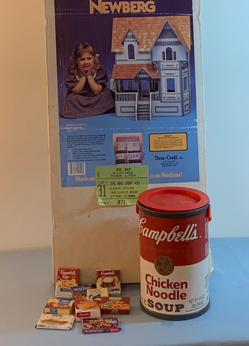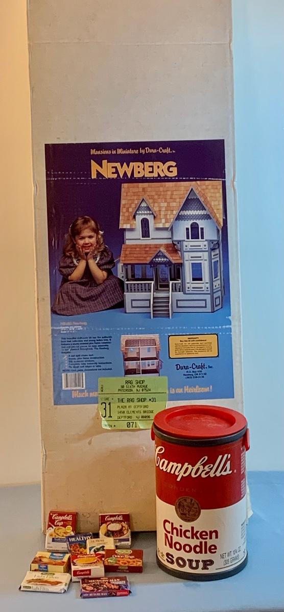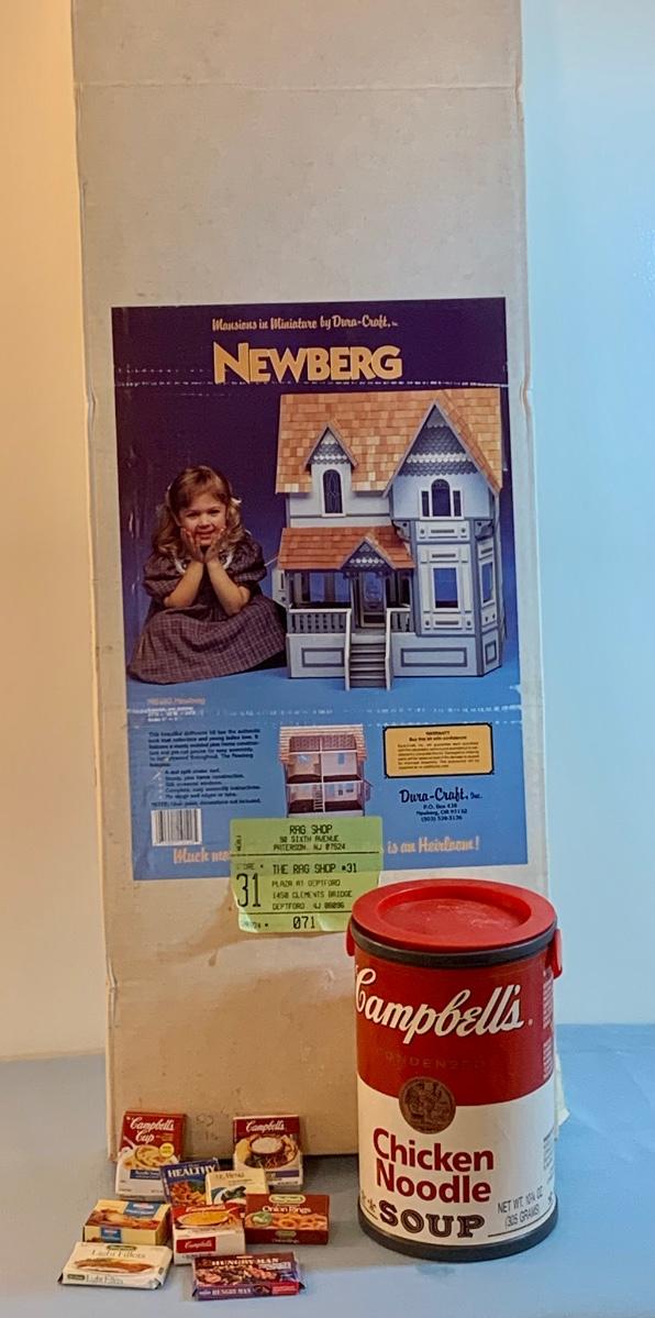 Lot 157G: Unopened Dura-Craft Newbberg Doll House Kit and Cambell's Toy Food and Soup Container