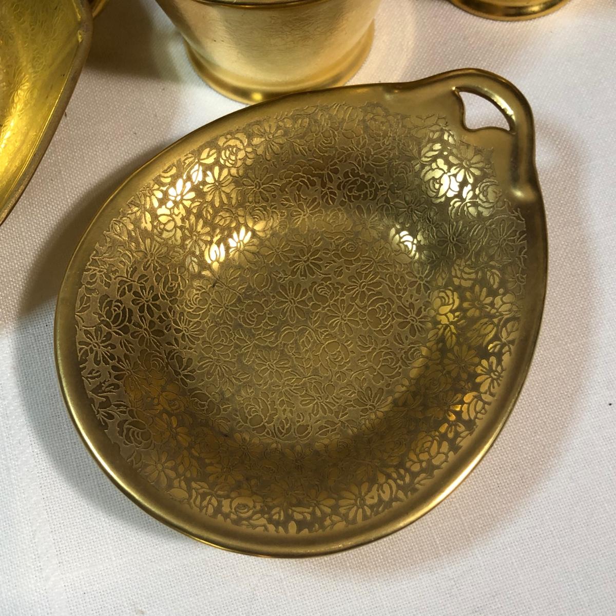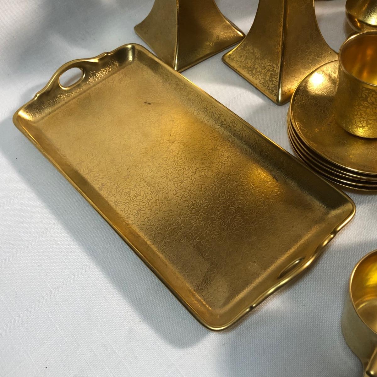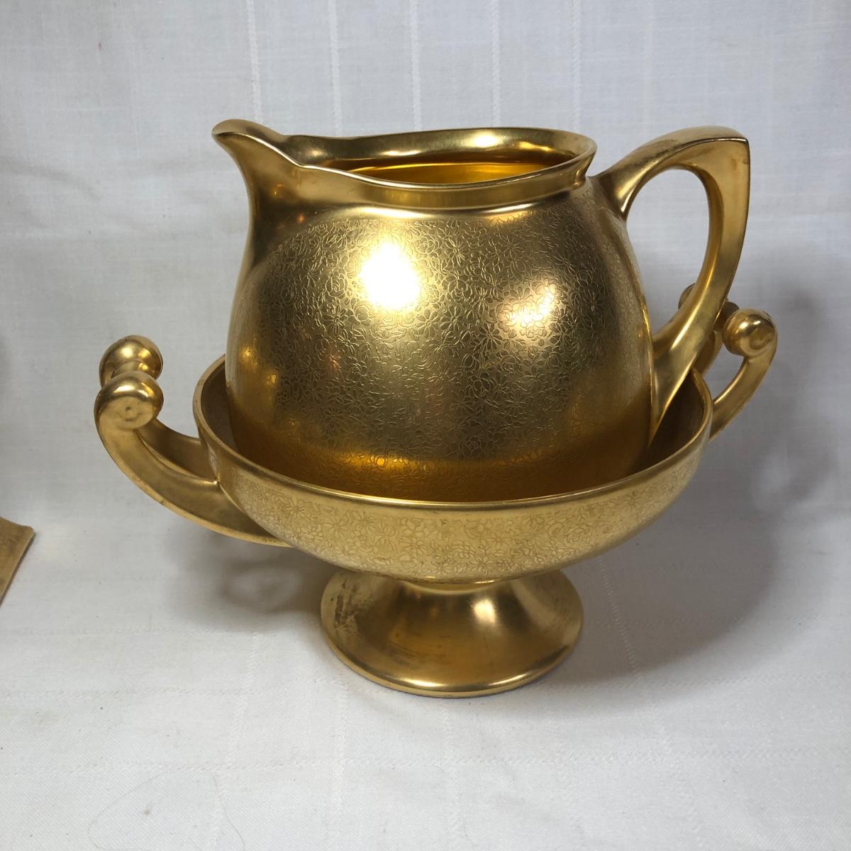 Includes 6 tea cups, 5 saucers, 3 spice shakers, tea pot with matching sugar bowl & creamer, pitcher, 2 candlesticks & more.