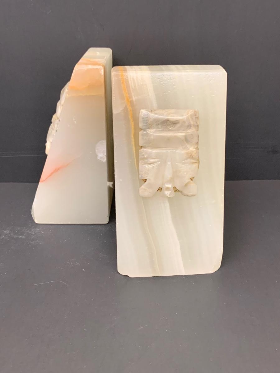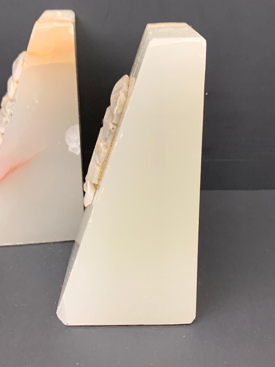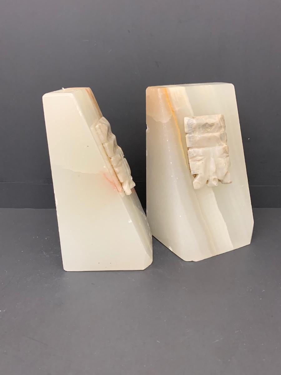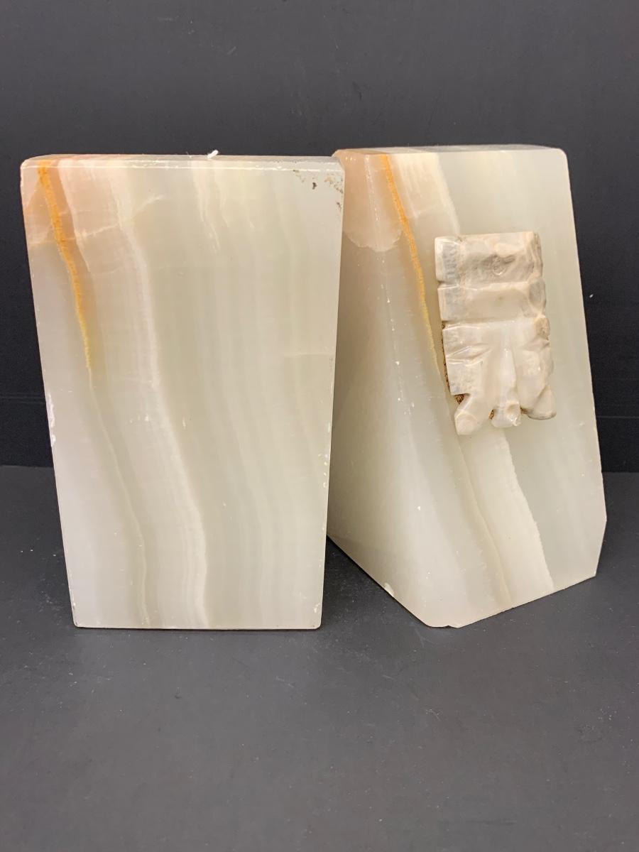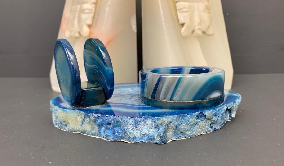 Lot 157R: Vintage Marble Bookends & Polished Blue Agate Desk Piece