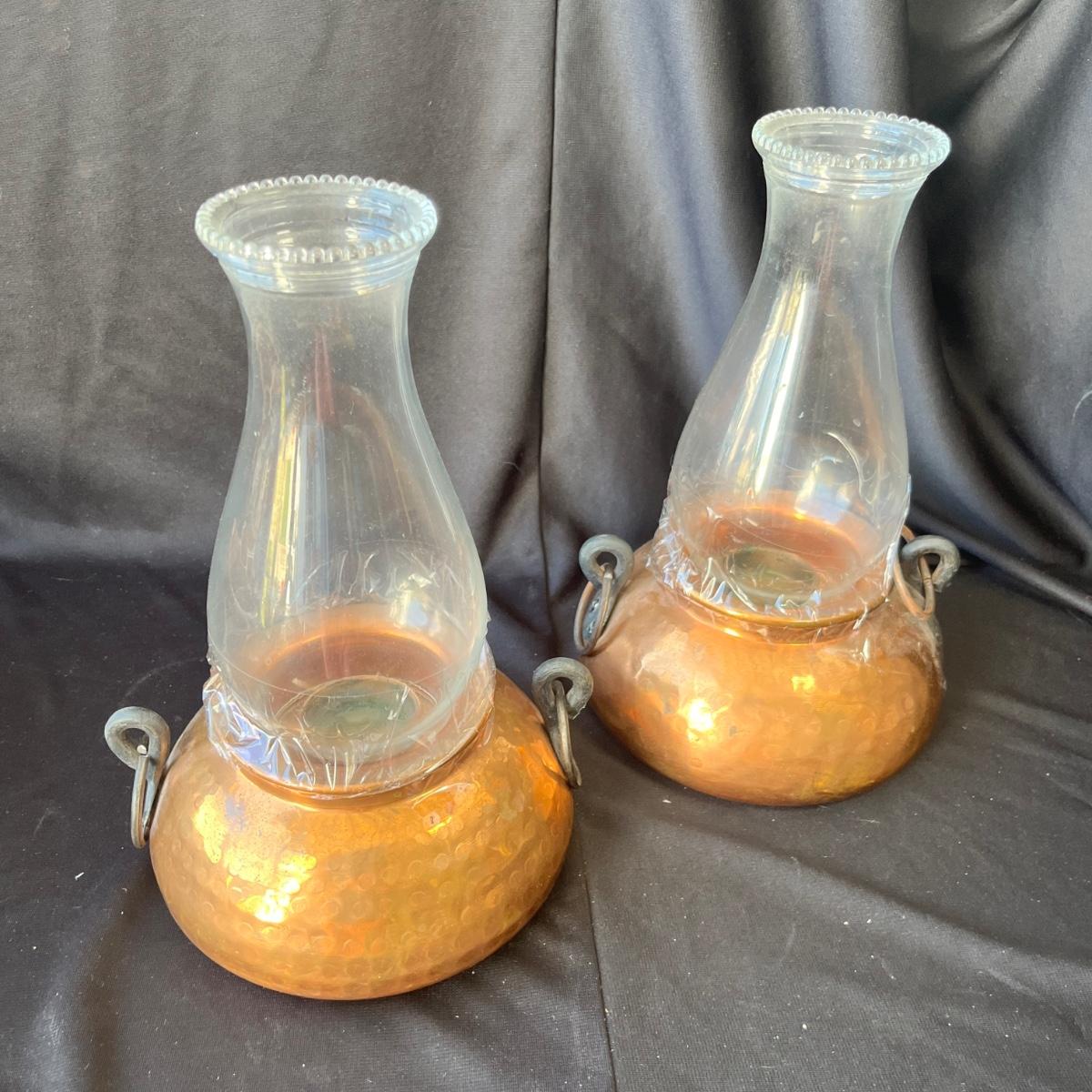 Lot 158 Vintage Copper Hurricane Lamps