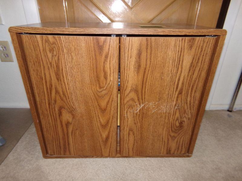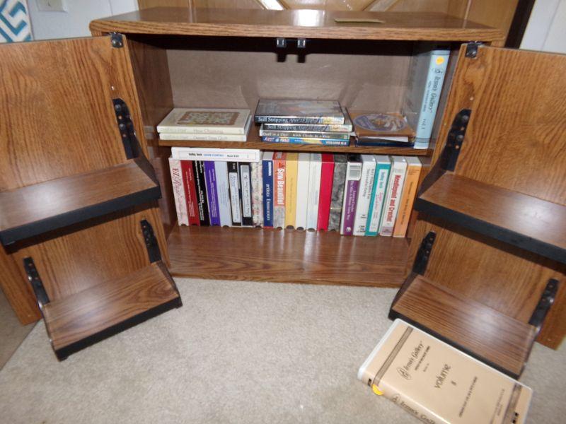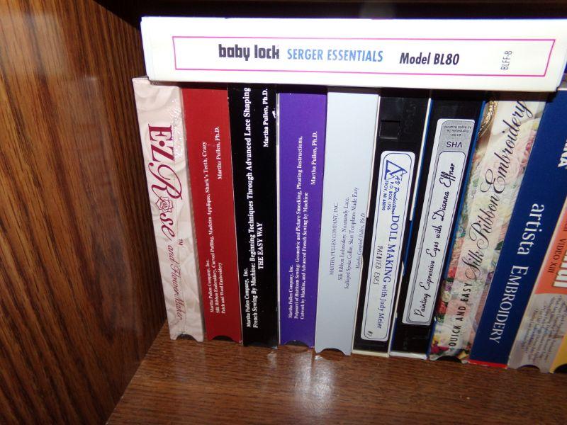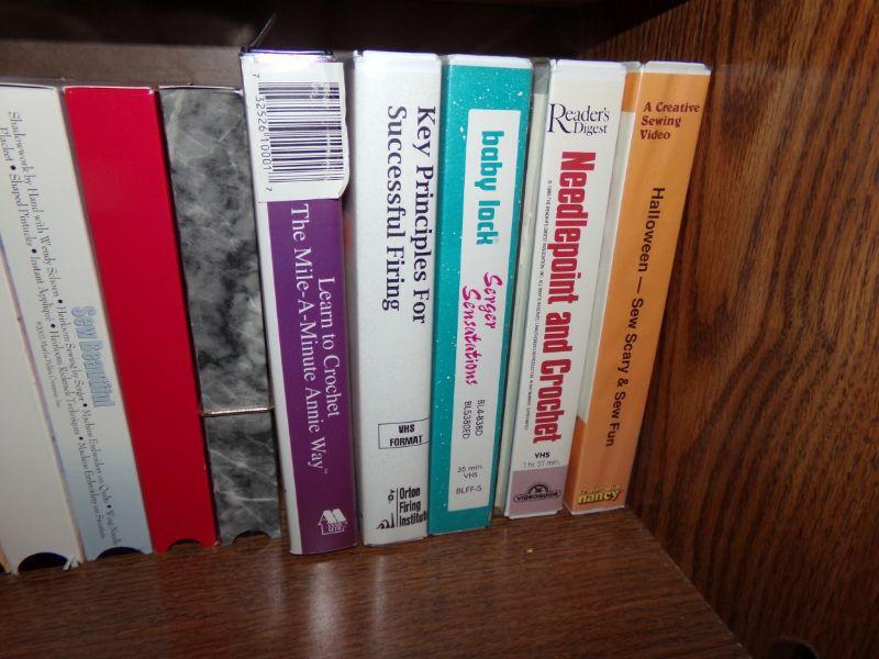 A WEALTH OF INFORMATION INSIDE THIS SMALL MEDIA CABINET THAT IS INCLUDED IN THIS LOT OF DVD AND VHS INSTRUCTION VIDEOS