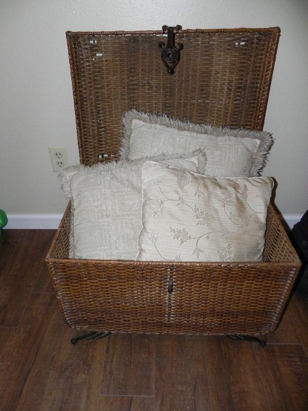 WICKER CHEST HAS DAMAGE TO THE TOP (SEE PICS)