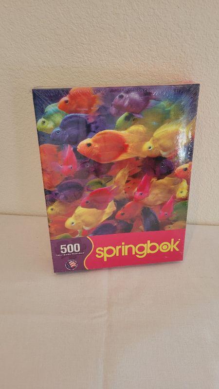 Lot 158:  Vintage New Sealed SPRINGBOK 500 pc. SCHOOLED IN COLOR Fish
