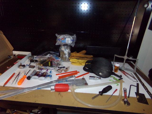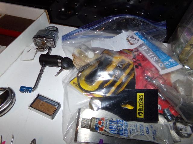 MISCELLANEOUS TOOLS, WORK GLOVES, GOGGLES, LOCKS, MUD MIXER BIT AND THE CHOPPER III