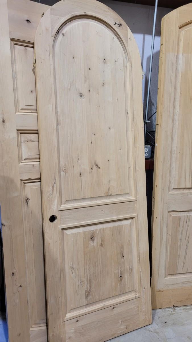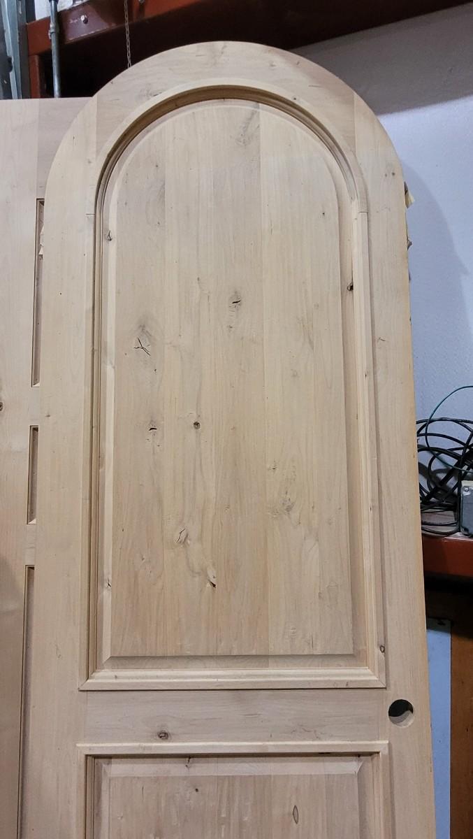 Lot 158: New Unused SOLID WOOD Arch Top Home Design Entry Door w/ Precut Door Hole