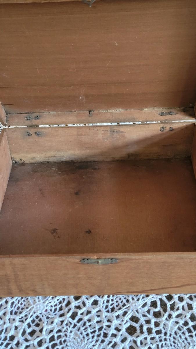 Bottom is coming off and needs to be reattached. There is discoloration on the bottom and the inside of the box.