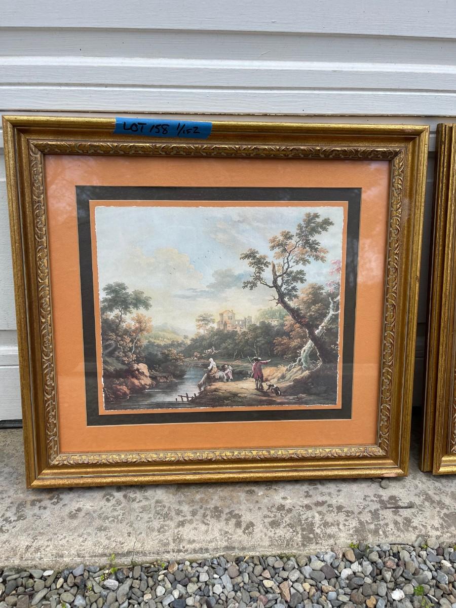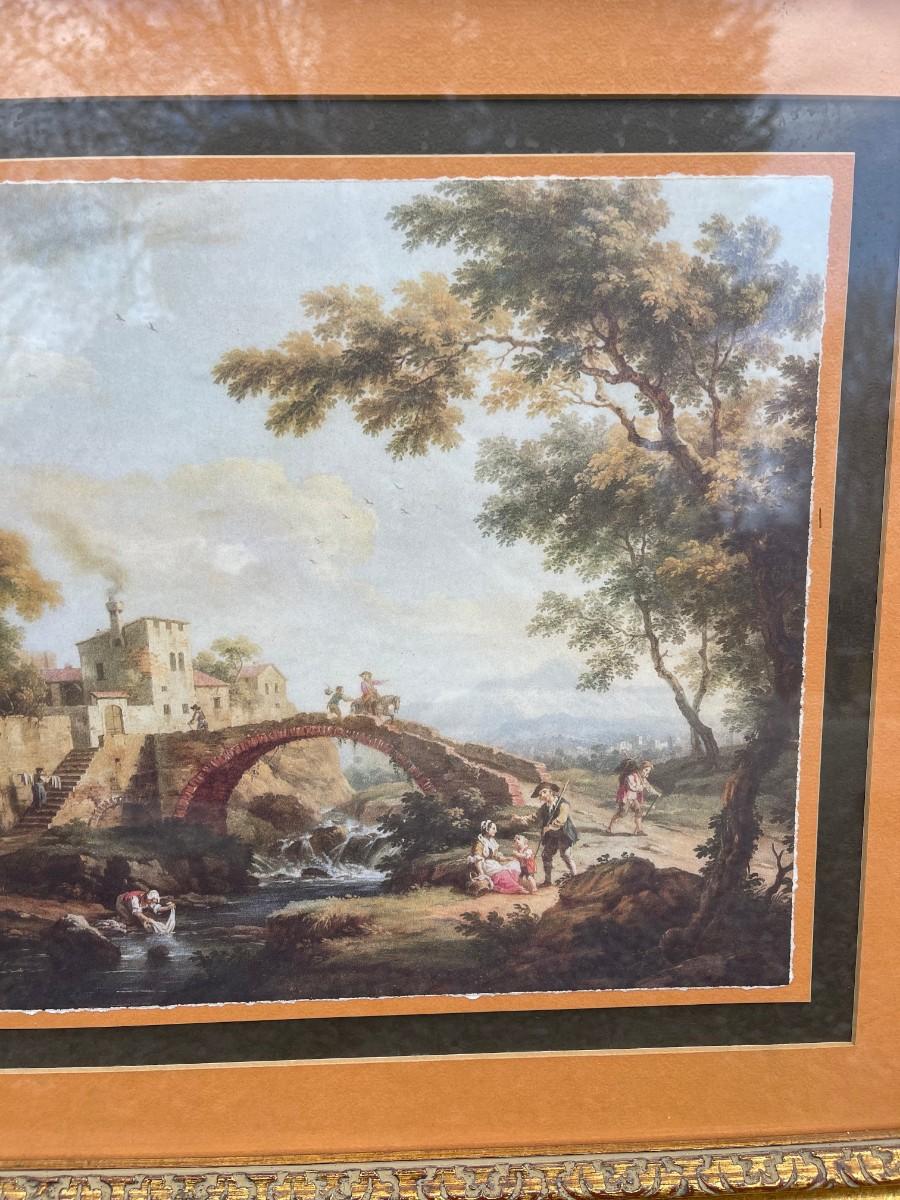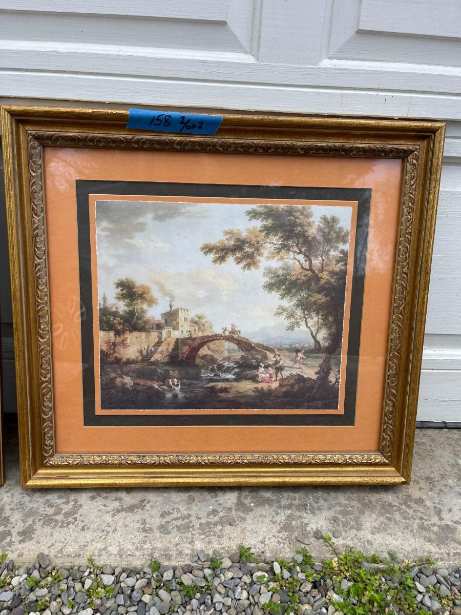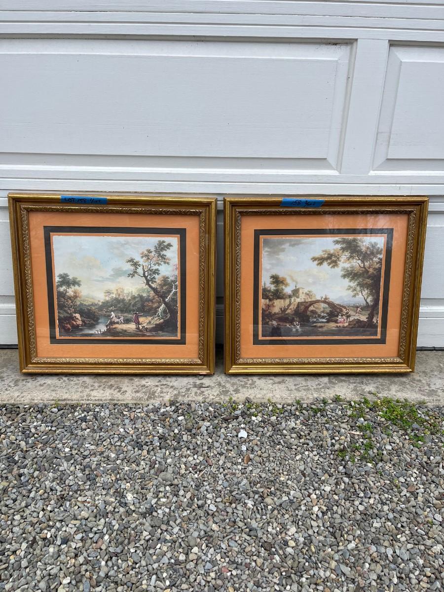Nicely framed and matted, 2 European antique scene, unsigned.