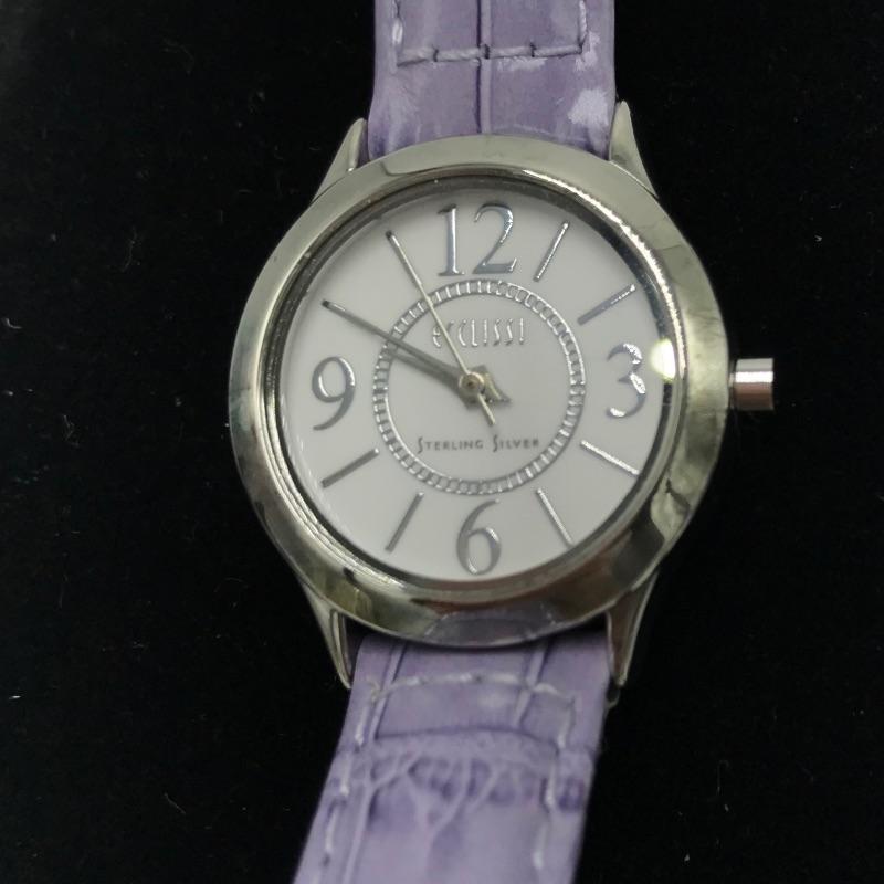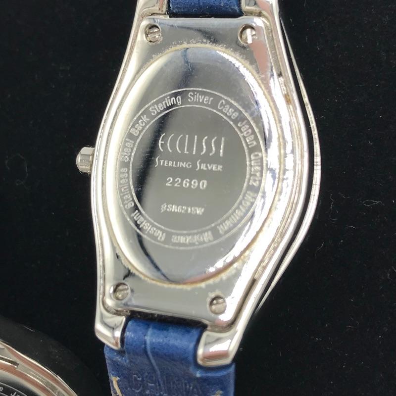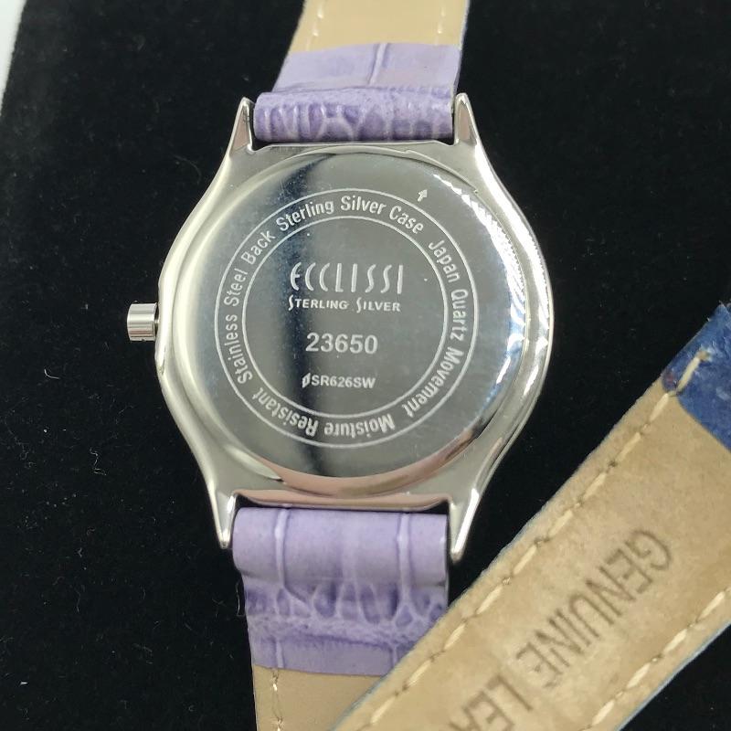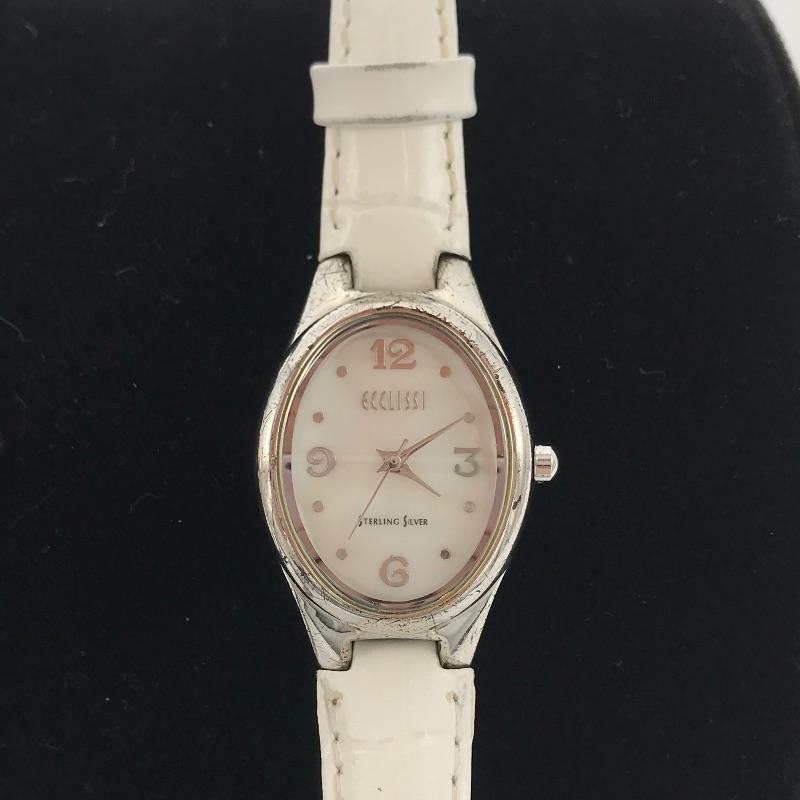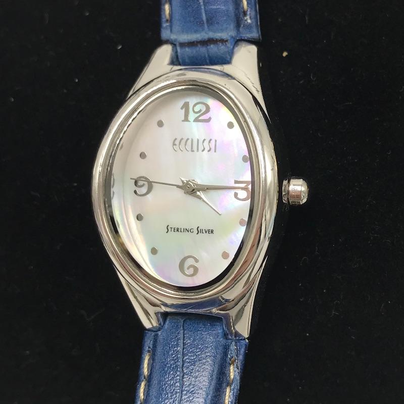 Four Ecclissi watches with genuine leather watch bands. Three watches state Sterling Silver cases. The two oval watches have identical model numbers and shimmer with an abalone style face. See photos.