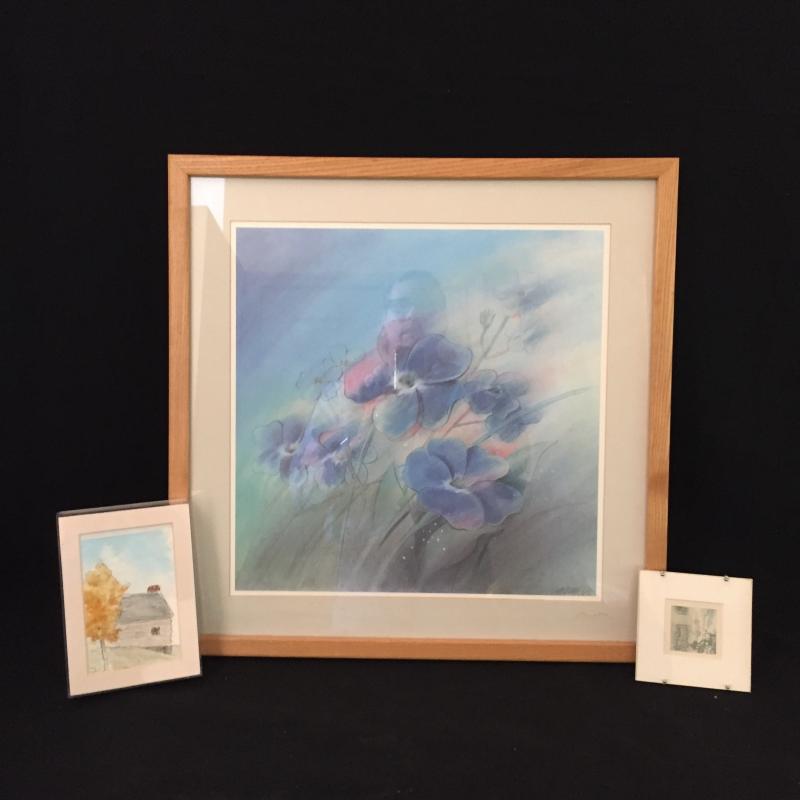 Lovely Large Picture of Flowers,Picture of Barn and Picture of Field. Largest Art Measures 21” x 21”. Slight water stain on Matting of largest piece-See Pictures