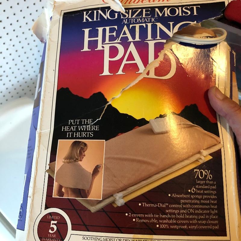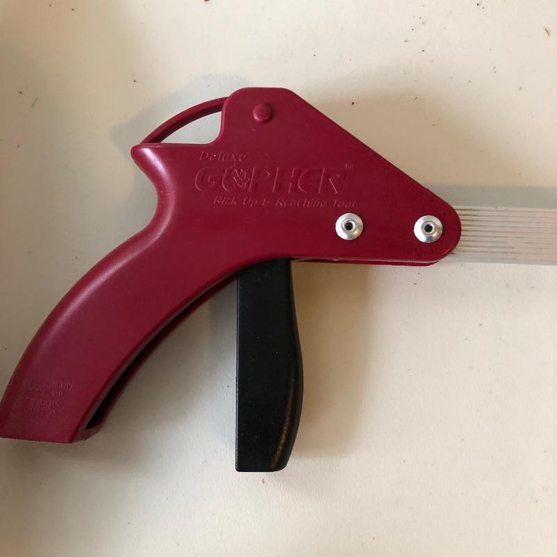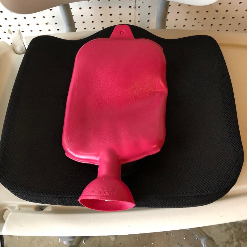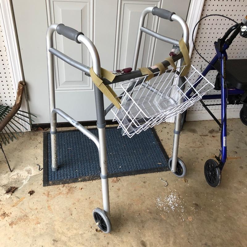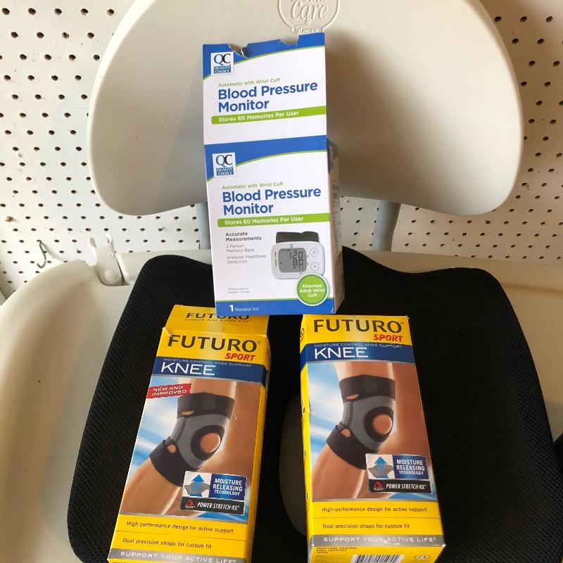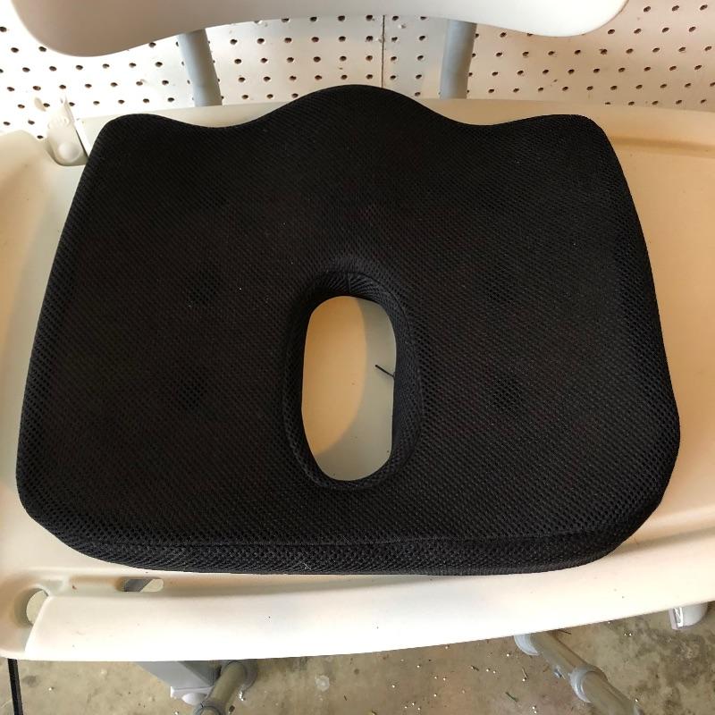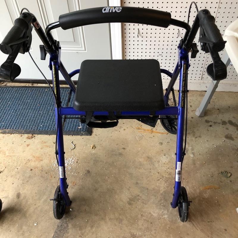 This large lot of health and medical aids contains so much, it’s easiest if you look at our images, but to name a few of the items, there are two walkers, two shower chairs and a stool, two Gopher reaching tools, pair of Ortho Feet shoes size 9.5 and much more. The floral pillow is a microwaveable heating pad, probably filled with rice or the like.