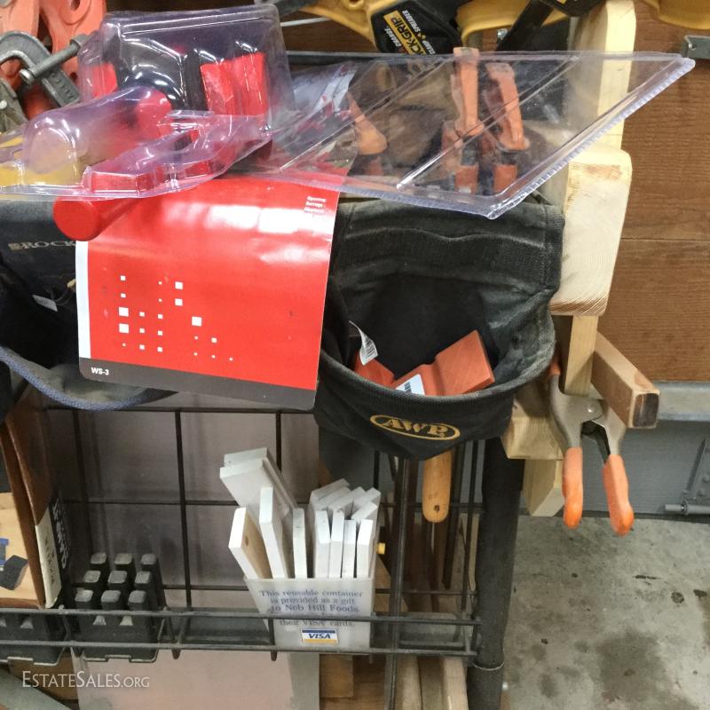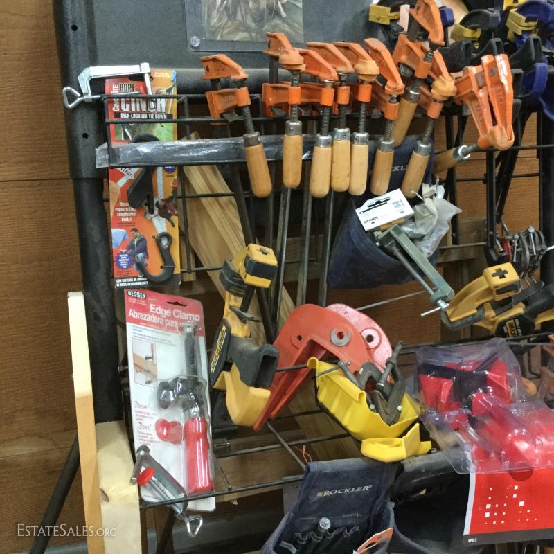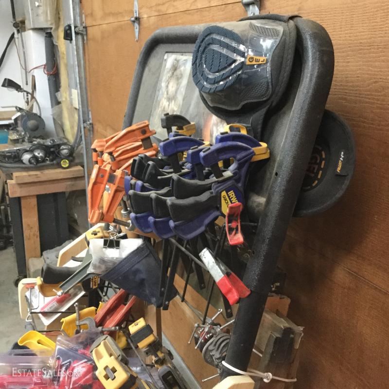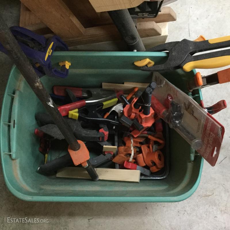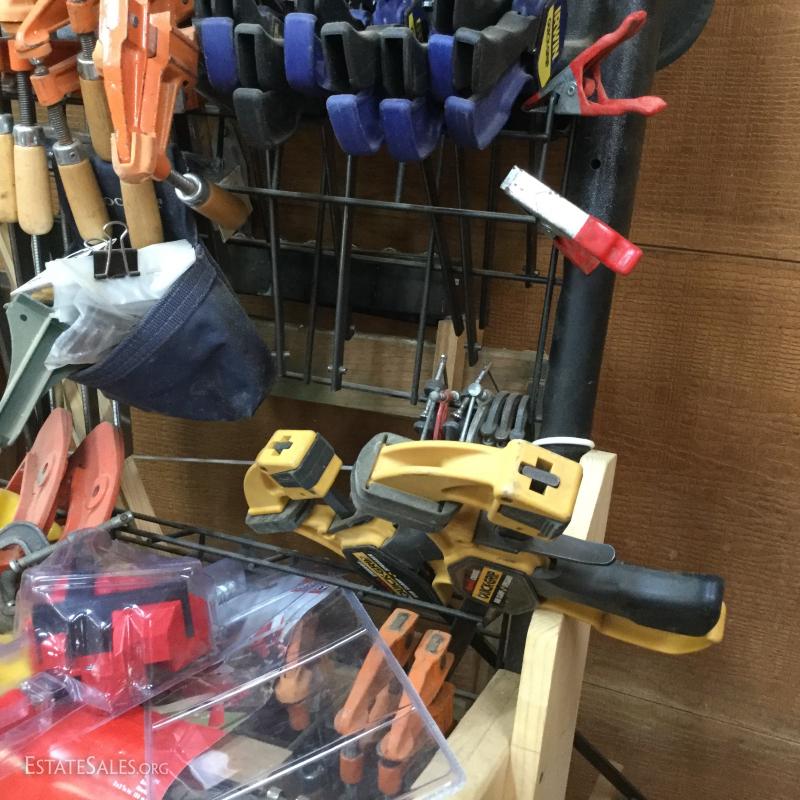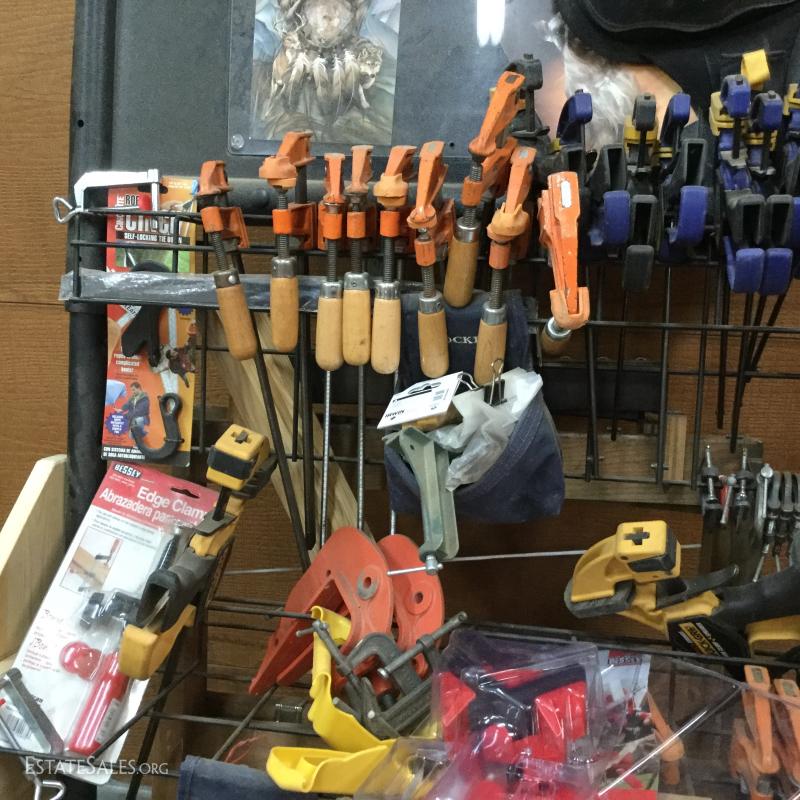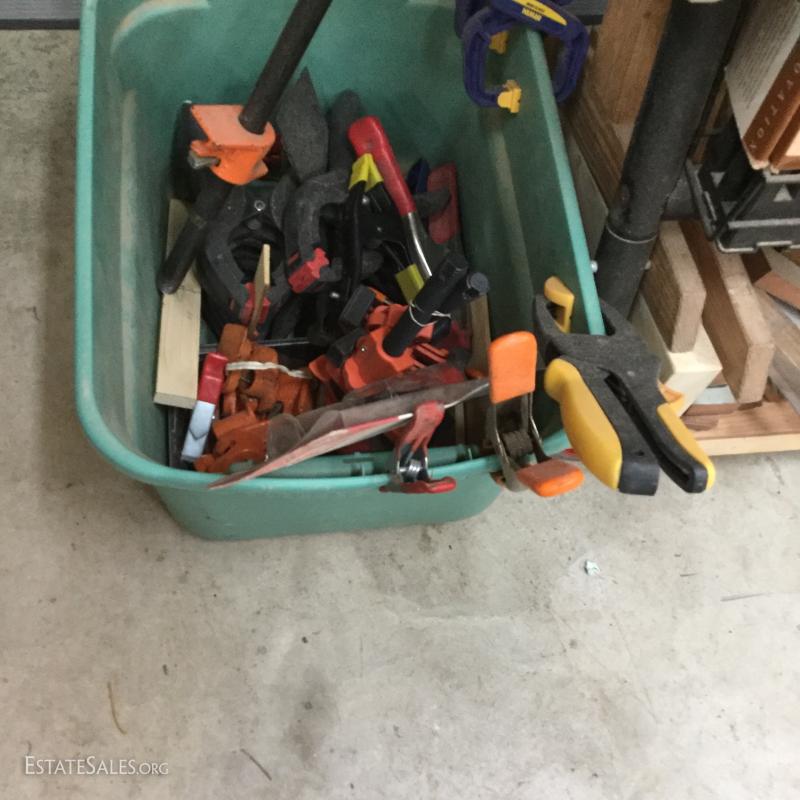 This large lot of all sizes of clamps made of plastic, metal and wood also has a great rolling storage cart. If it needs clamping, you've got options! Cart is 81" tall and 34" wide. This lot is available for local pick up in Hendersonville, NC only.