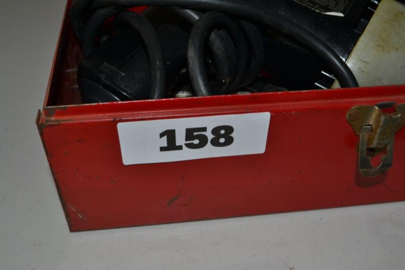 LOT 158 METAL TOOL BOX WITH CORDED DRILL
