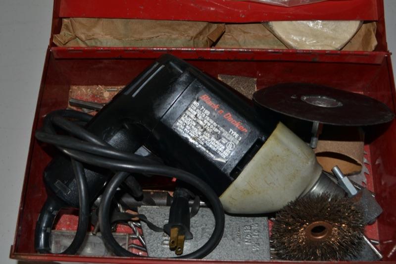 METAL TOOL BOX WITH CORDED DRILL
