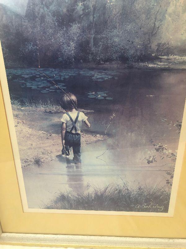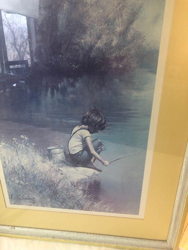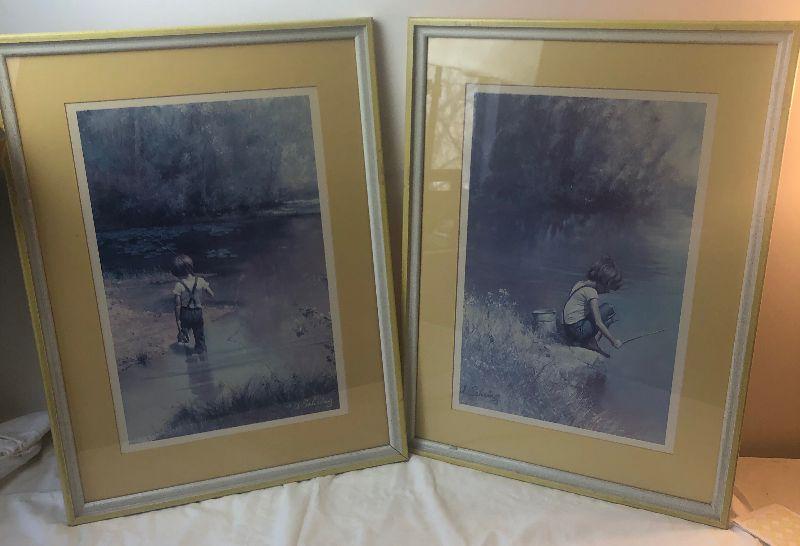 Lot #158 Pair of art prints - boy with fishing pole