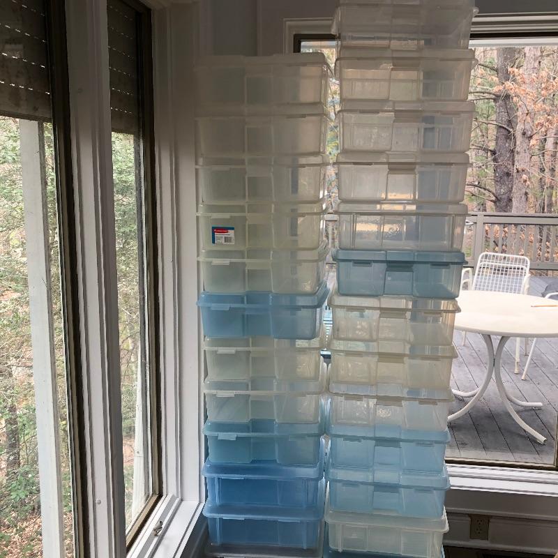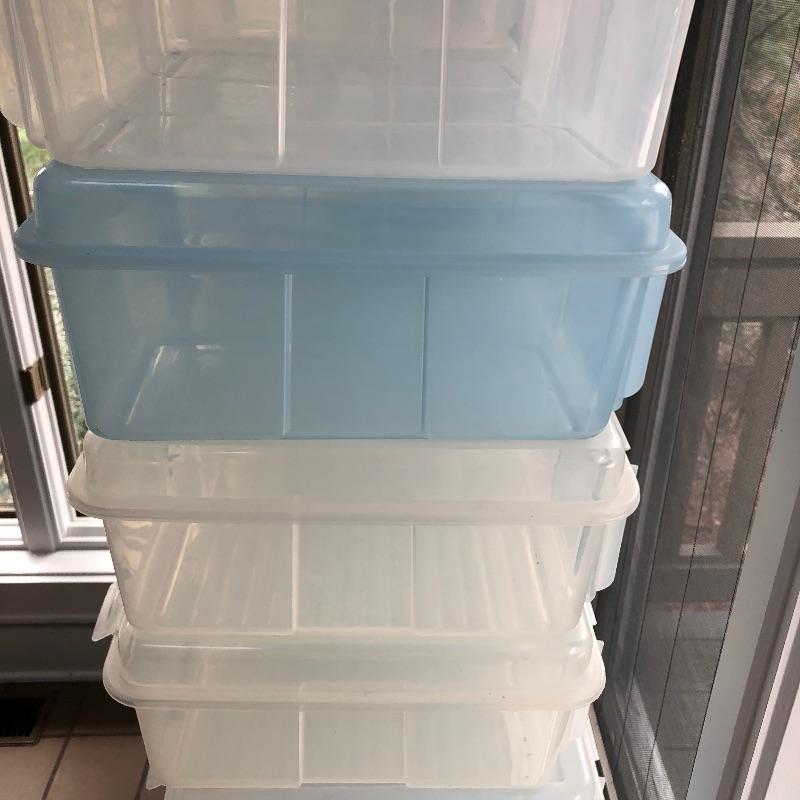25 Rubbermaid 4.1 gallon clear and blue snap cases. Each case measures 17” x 14” x 7”. Local pickup only.