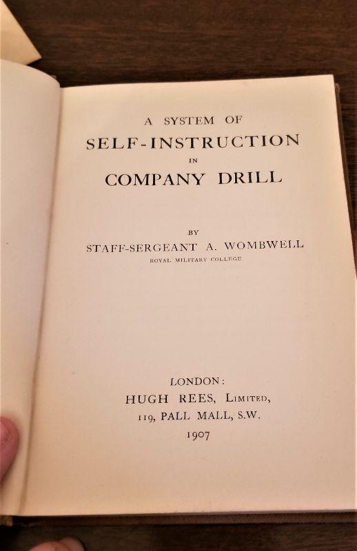 Not a former library - has all the cards included - they fit in a pouch inside front cover. Self Instruction on Military Drill - A primer on teaching yourself British military drill, written by A. Wombwell in 1907. 111 pages. Clean copy.