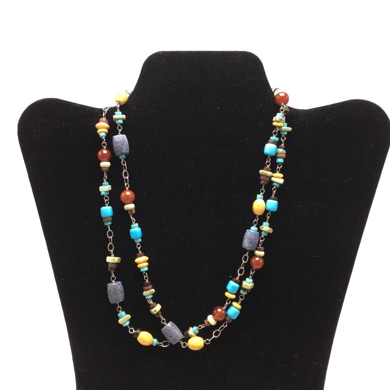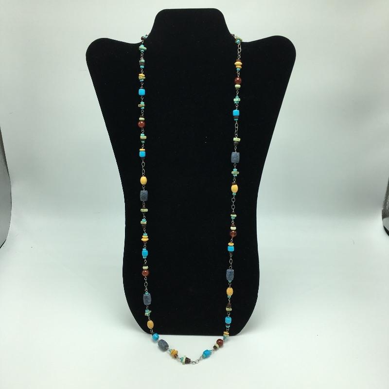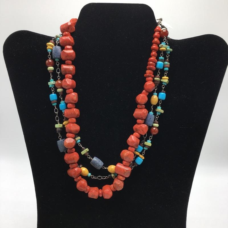 Silpada Necklace in sterling silver, carnelian, howlite, sponge coral, yellow jasper and tigers eye necklace that measures 35” long And a sponge coral necklace that measures 18” long.