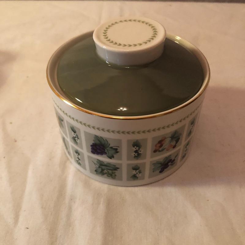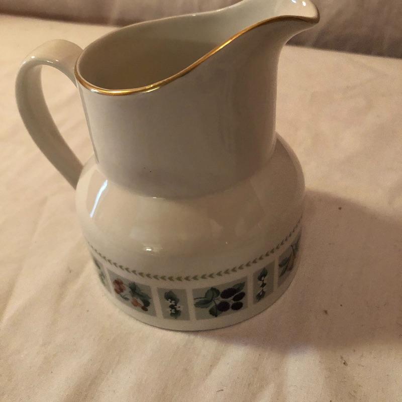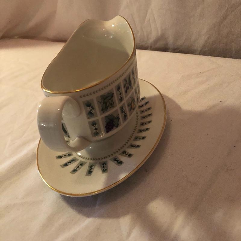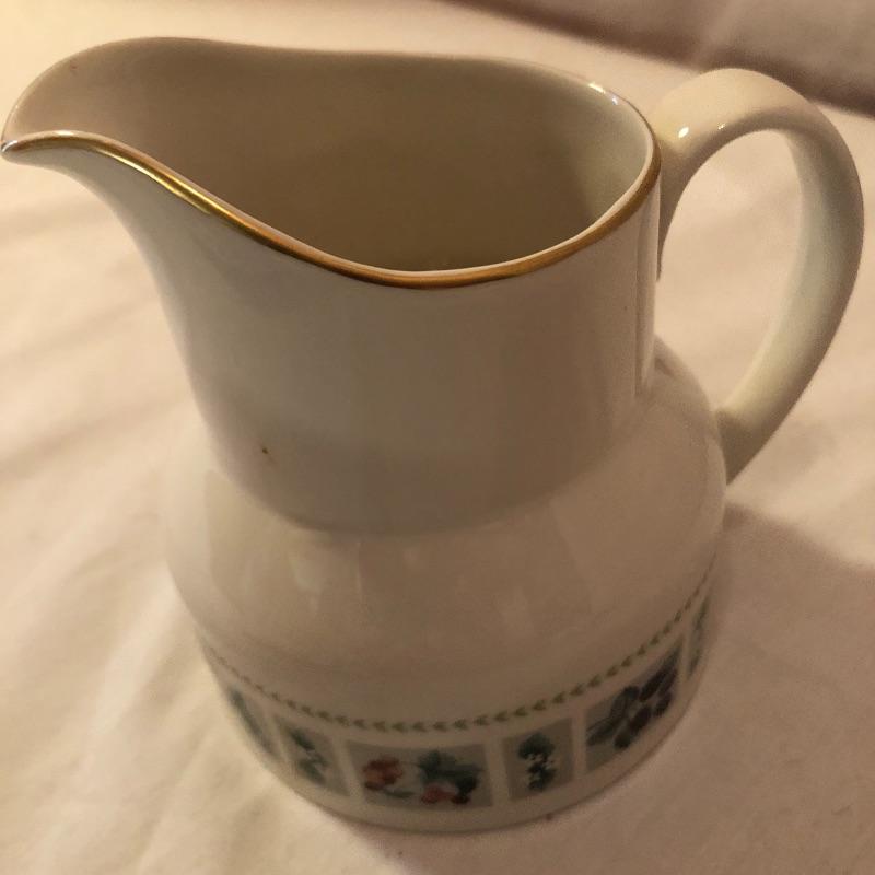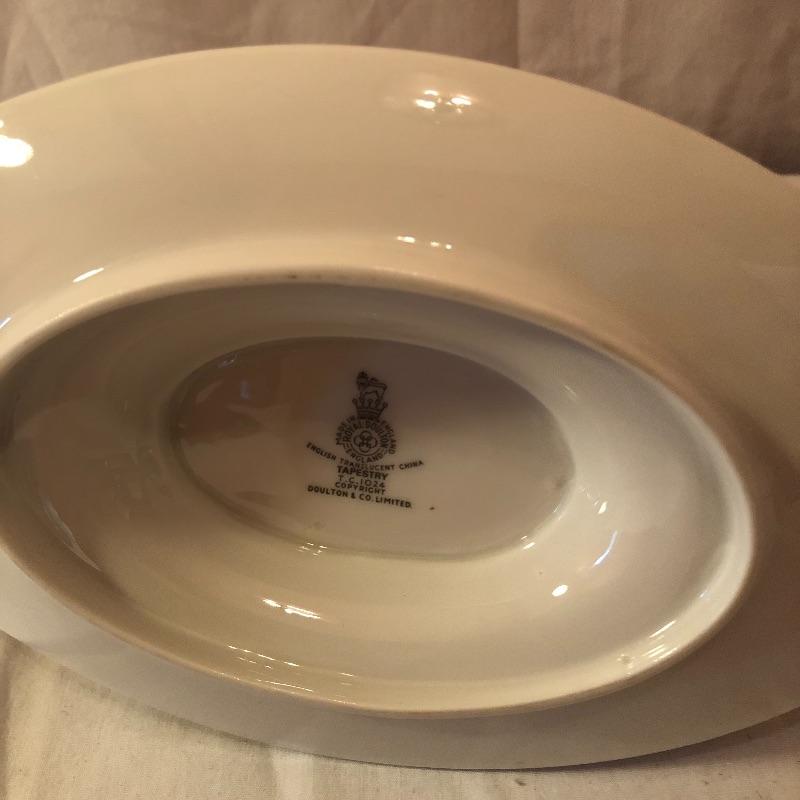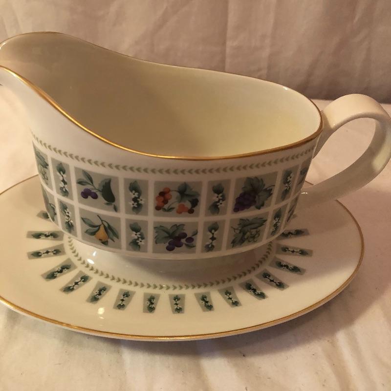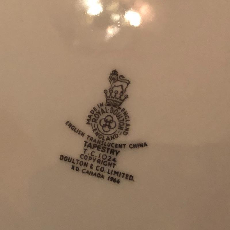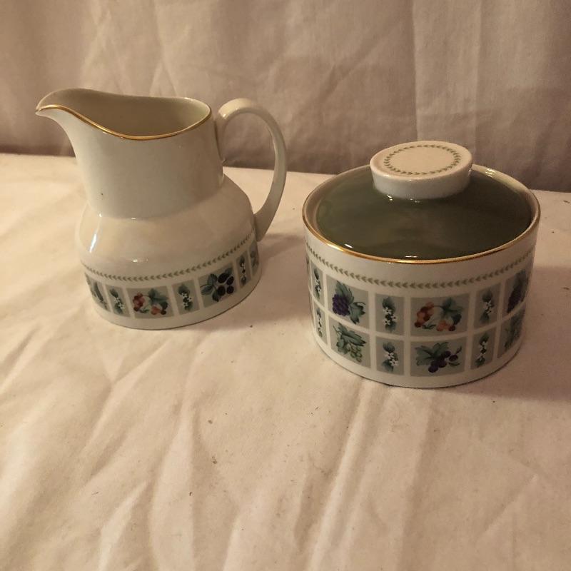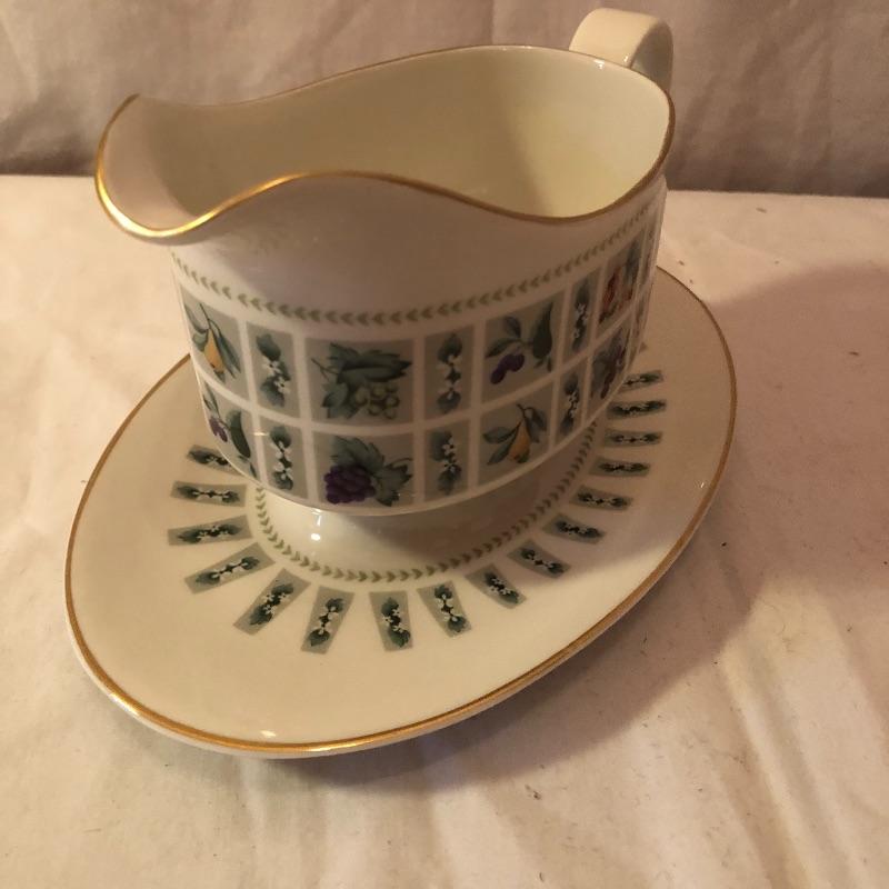 This beautiful set includes twelve dinner plates, six smaller dinner plates, twelve salad plates and thirteen bread plates. There are twelve saucers with twelve cups. The set also includes a sugar and creamer set, gravy boat, two serving bowls and two serving platters. Shipping Available.