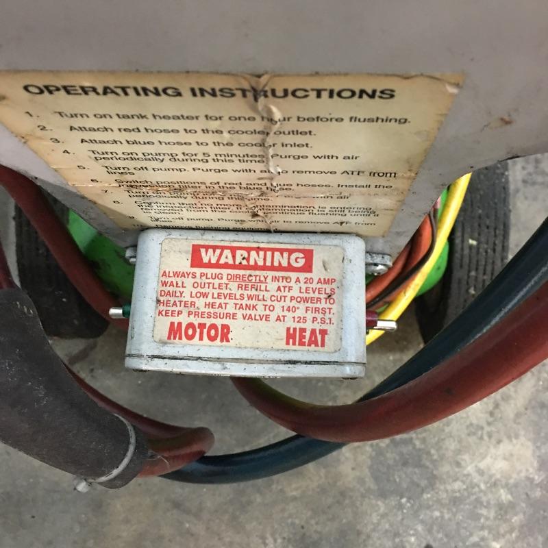 Turbo Tank heated cooler line flusher. Heated Cooler Line Flusher cleans out the cooler lines and heat exchanger prior to installing a rebuilt or new transmission; a process which has been proven to minimize the likelihood of repeat repairs. This special tool removes contamination in the cooling system by melting down waxy varnish residue from burnt ATF and by purging the metal particles, clutch materials, and other contaminants from the system. Only by heating the cooling system back to high temperatures will the exchanger expand releasing the debris into the flow of pulsating hot oil.