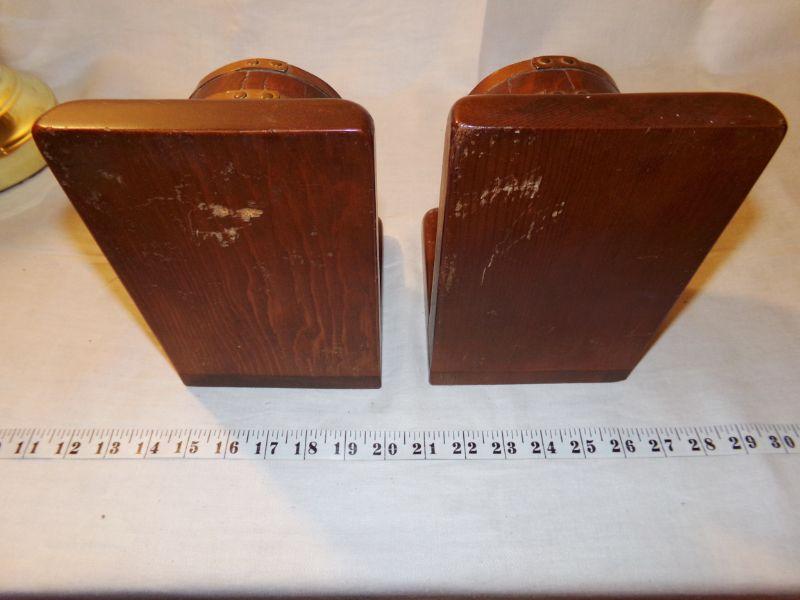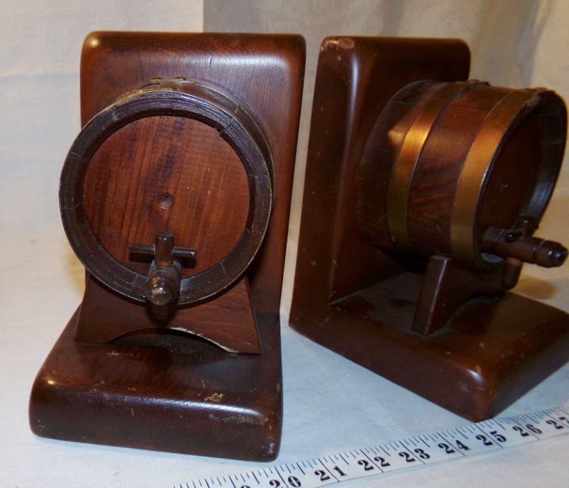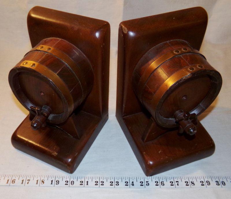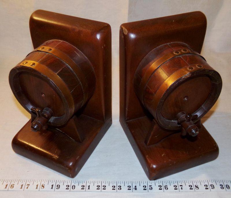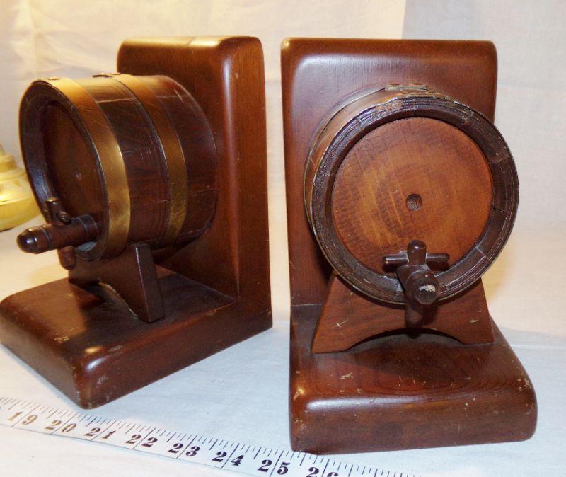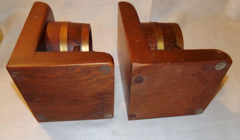 HEAVY WOODEN WHISKEY BARREL BOOKENDS