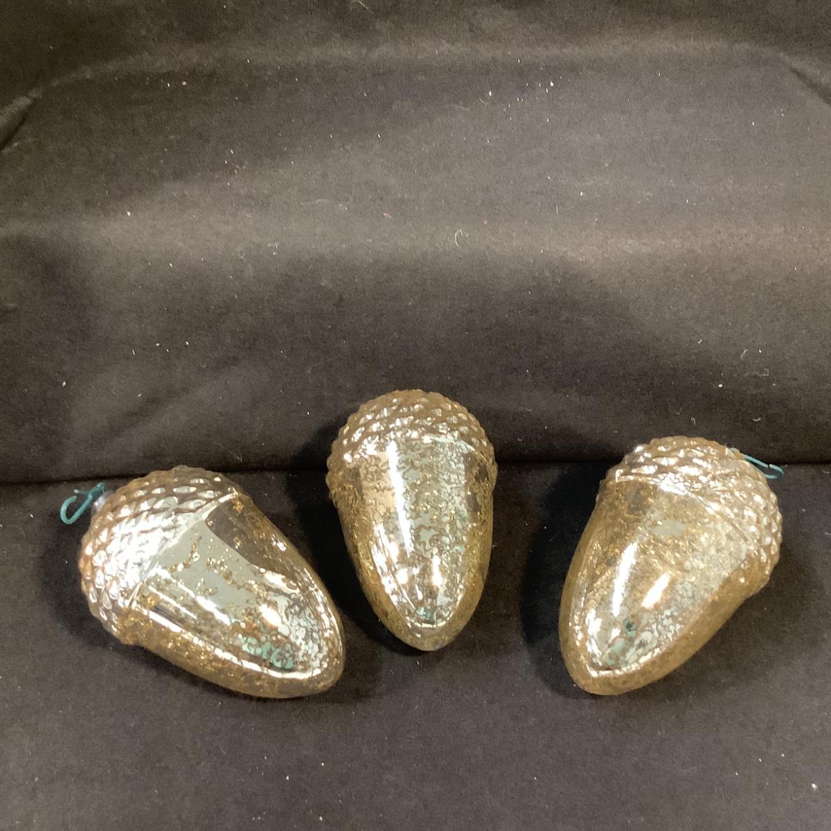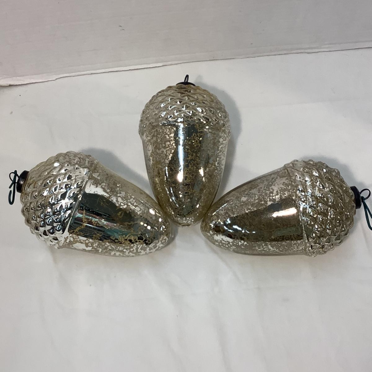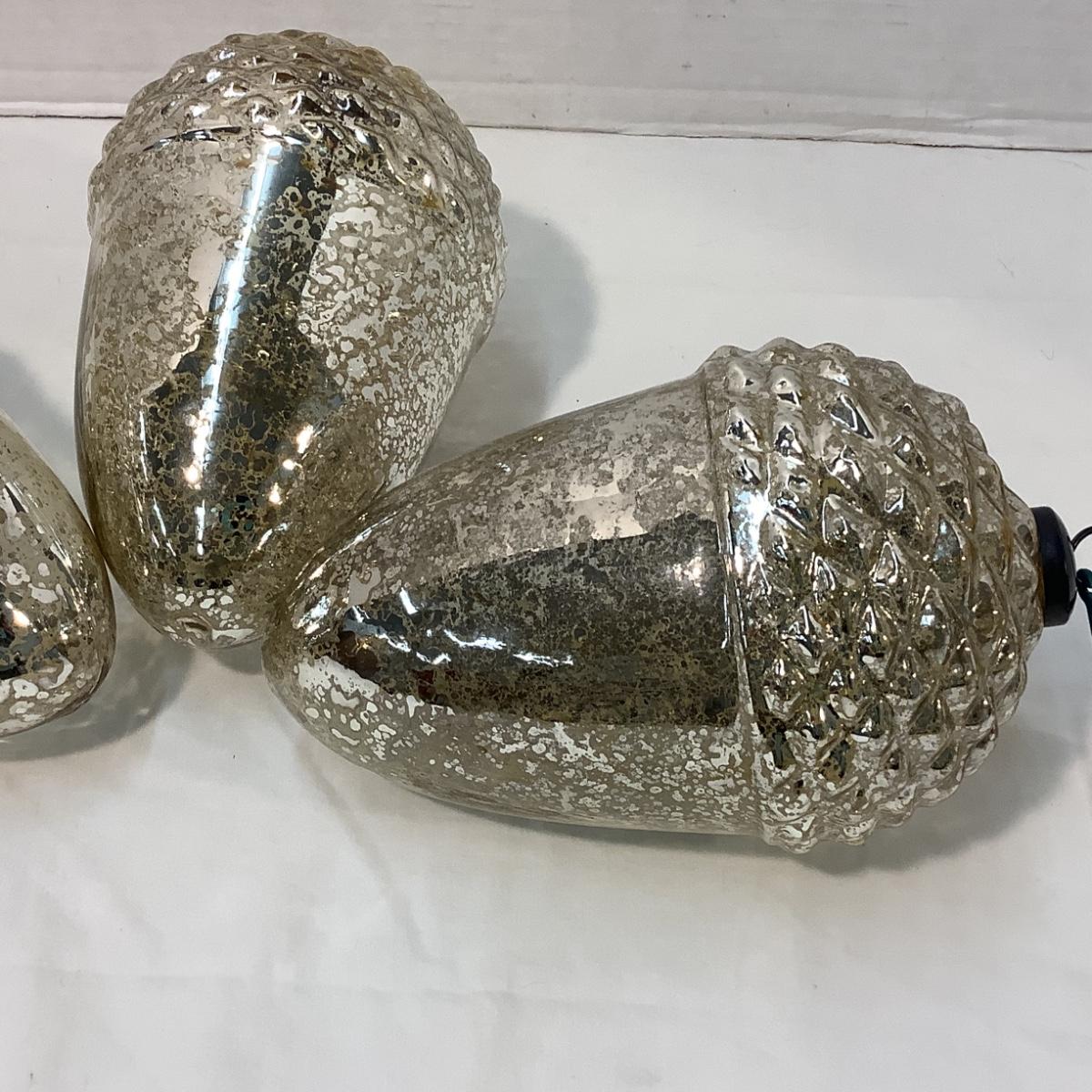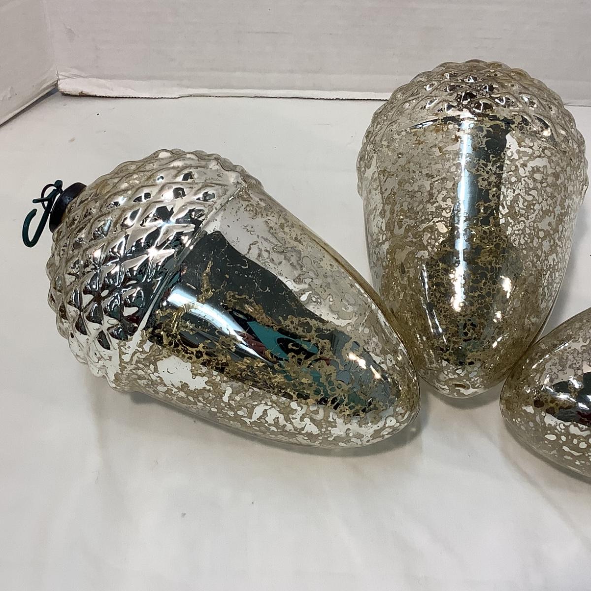 Lot 1583  Three Vintage Extra Large Acorn Shaped Mercury Glass Ornament