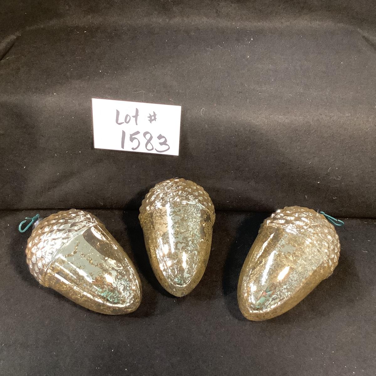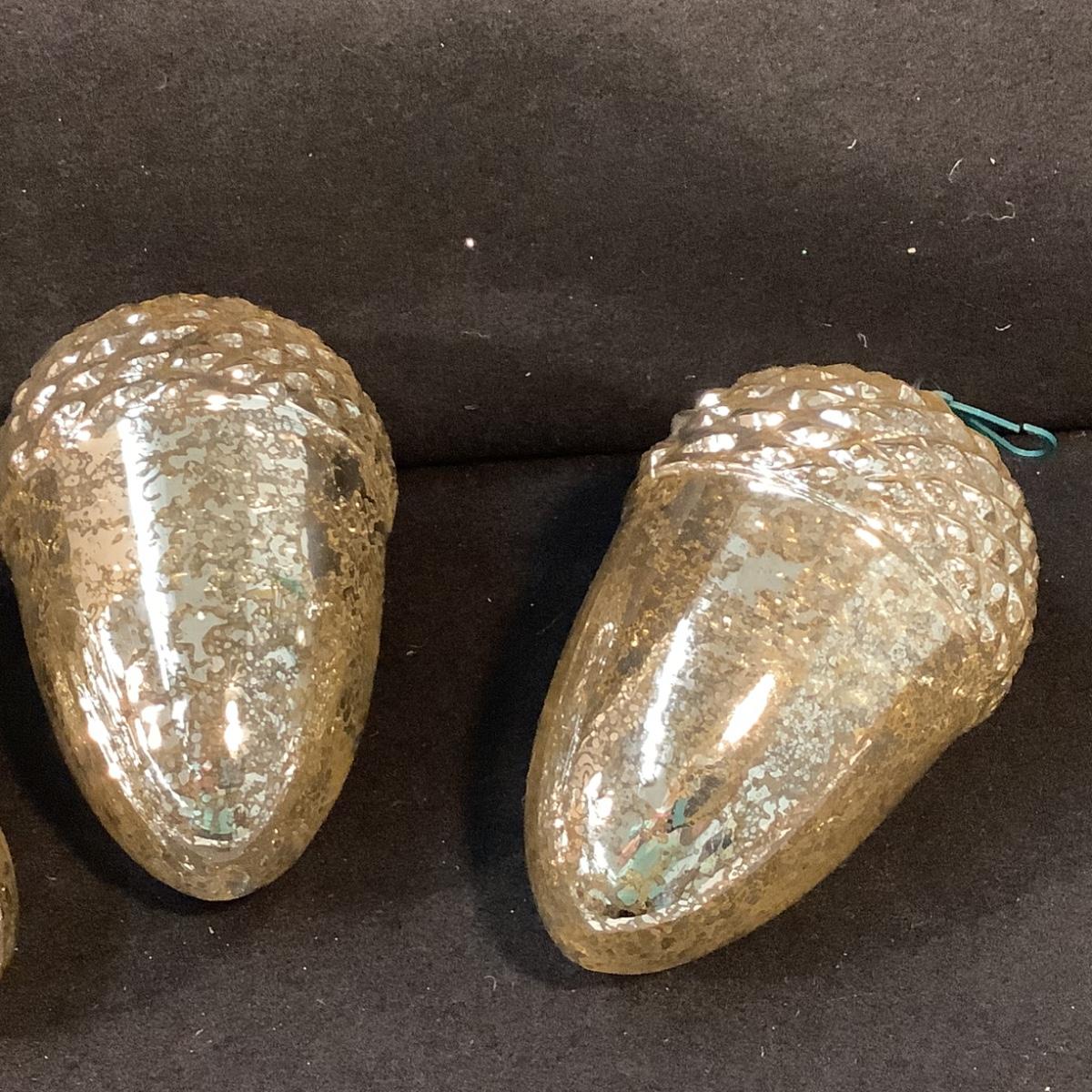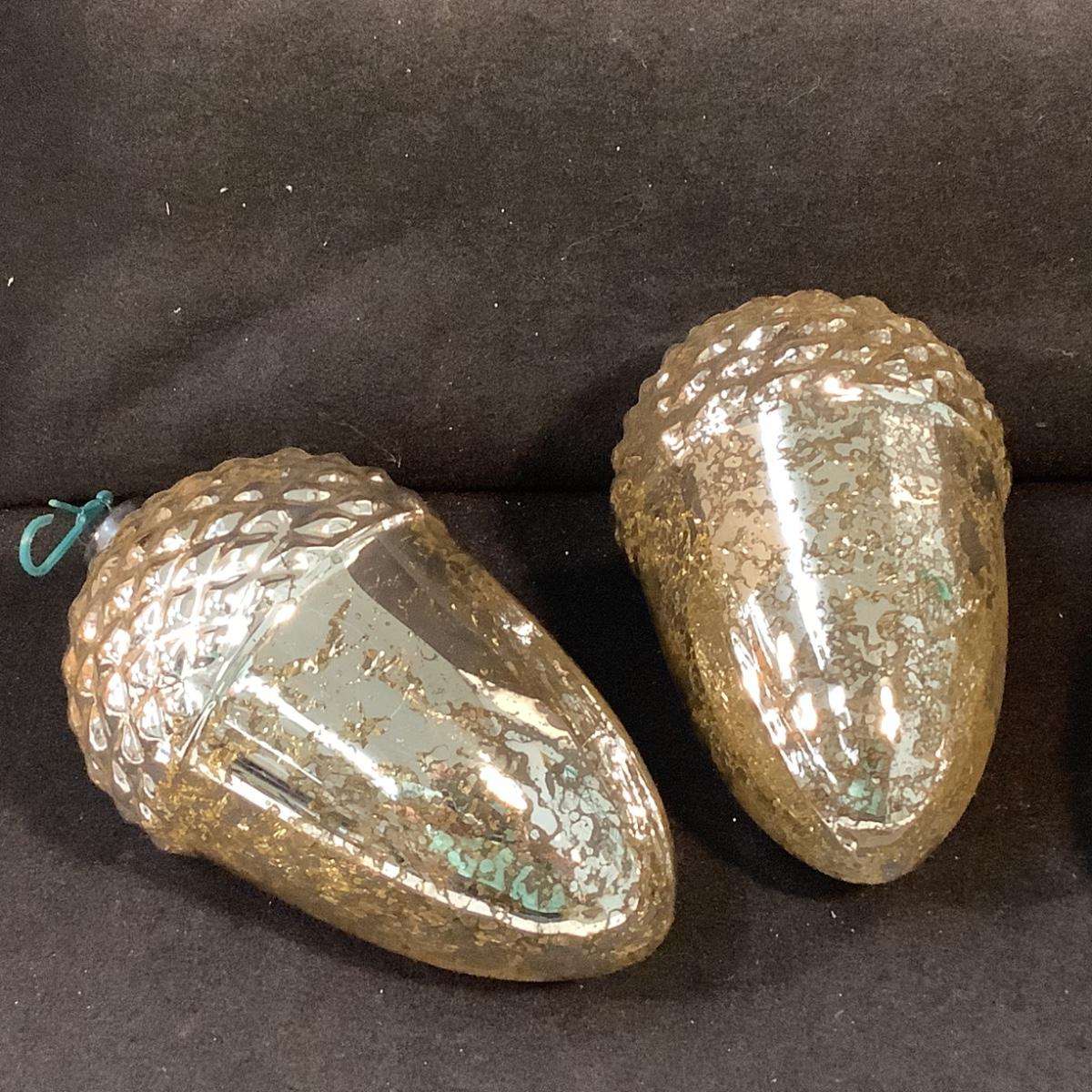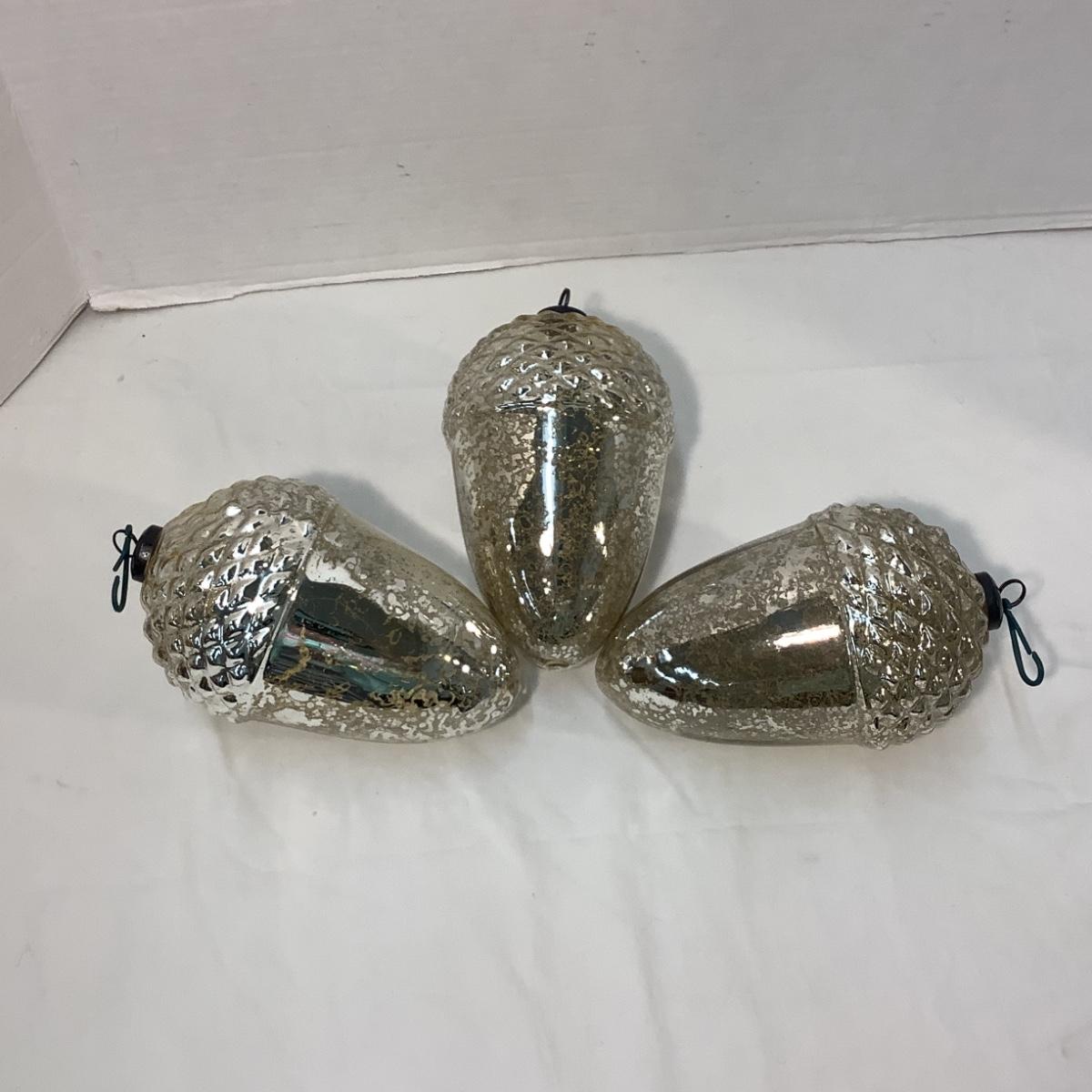 Lot 1583  Three Vintage Extra Large Acorn Shaped Mercury Glass Ornament