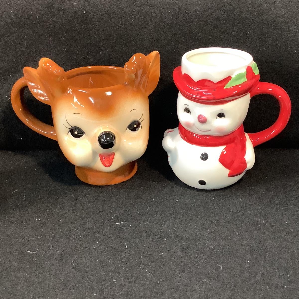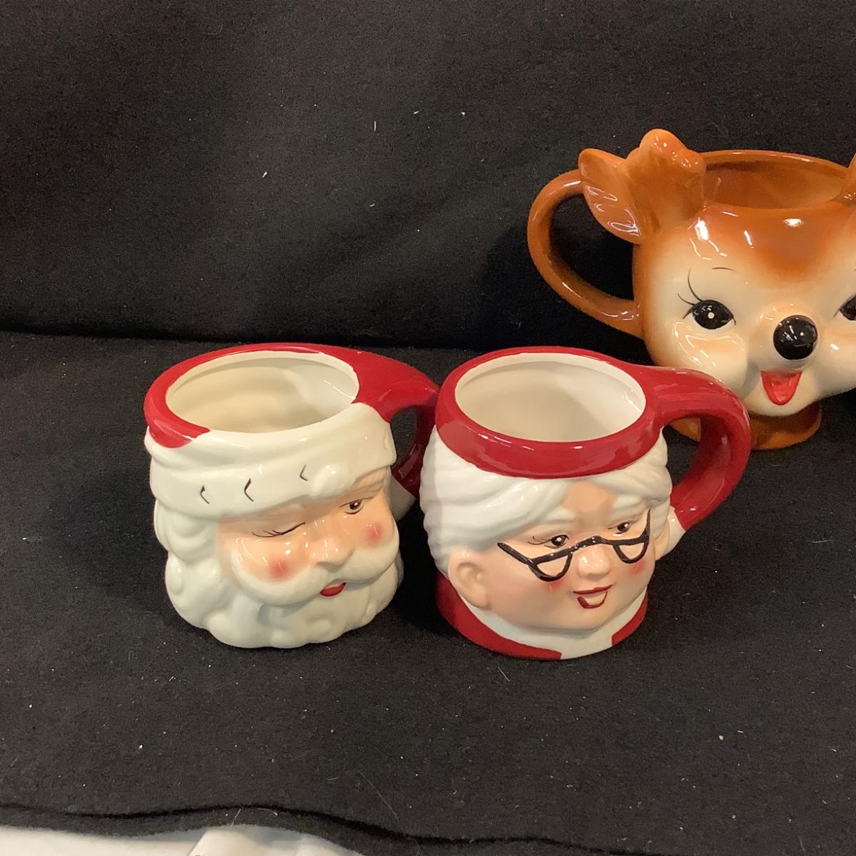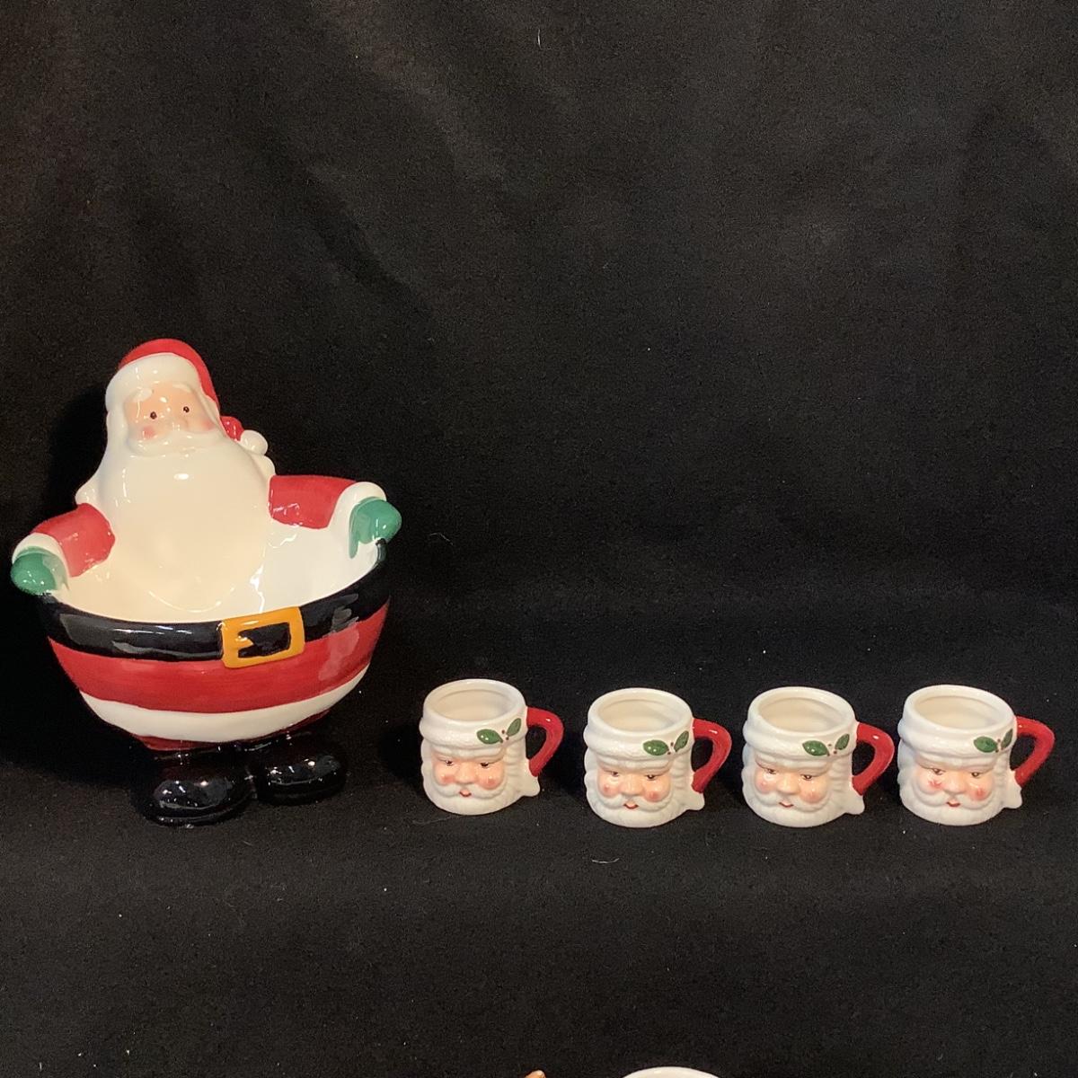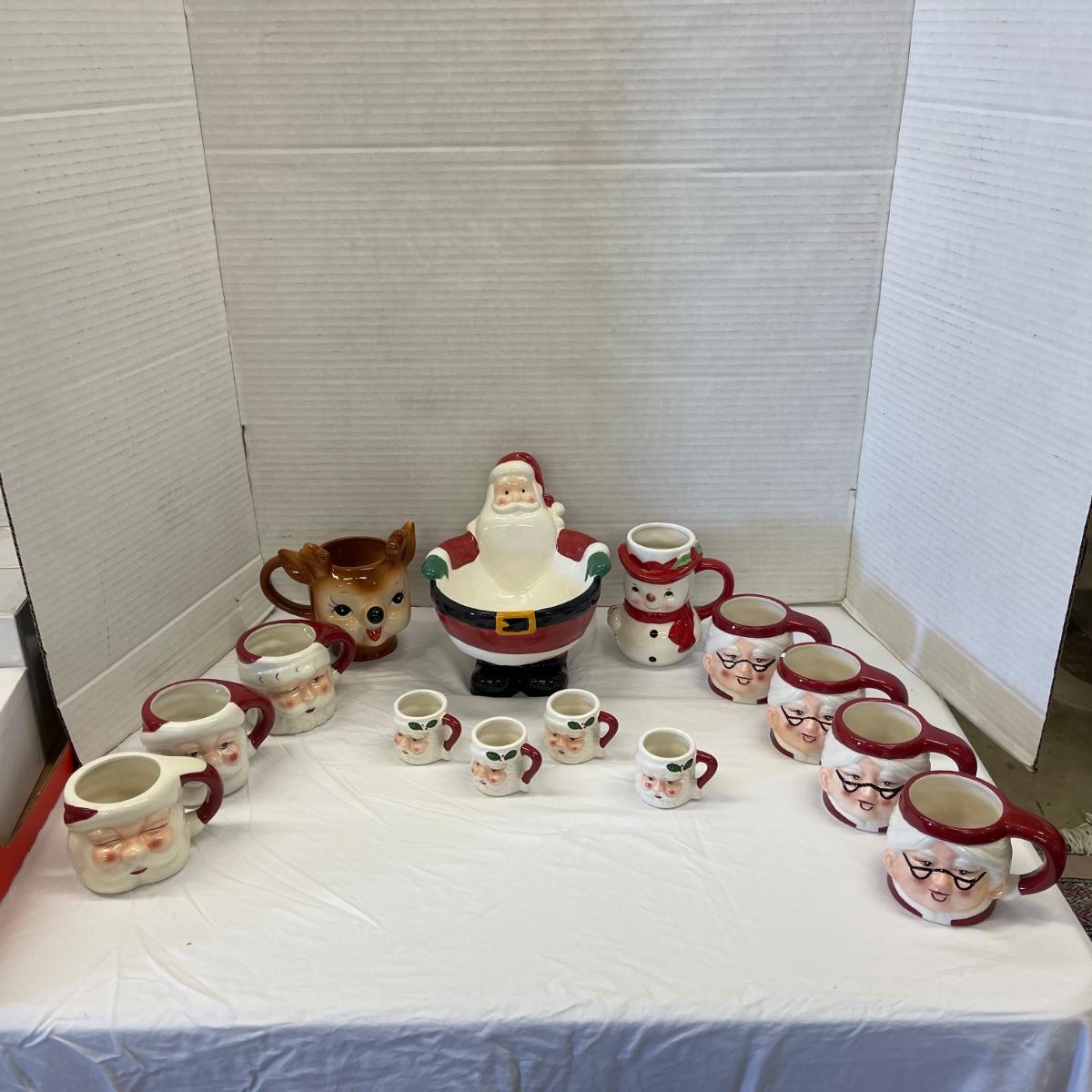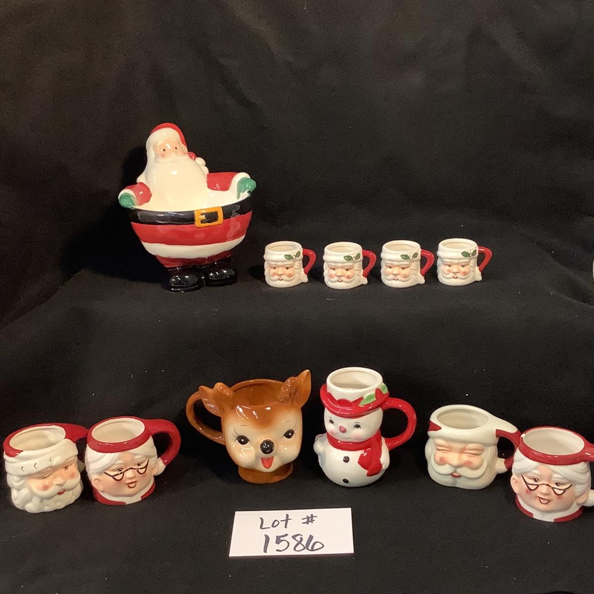 Lot 1586  Miniature Santa Punch Bowl with Four Miniature Santa Mugs/Two Sets Of Mr. & Mrs Claus Mugs/Reindeer Mug/Snowman Mug