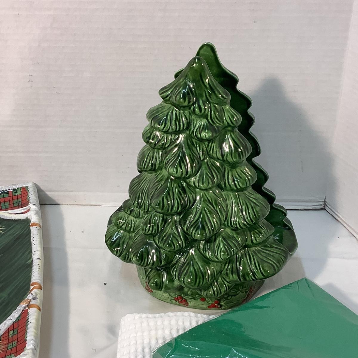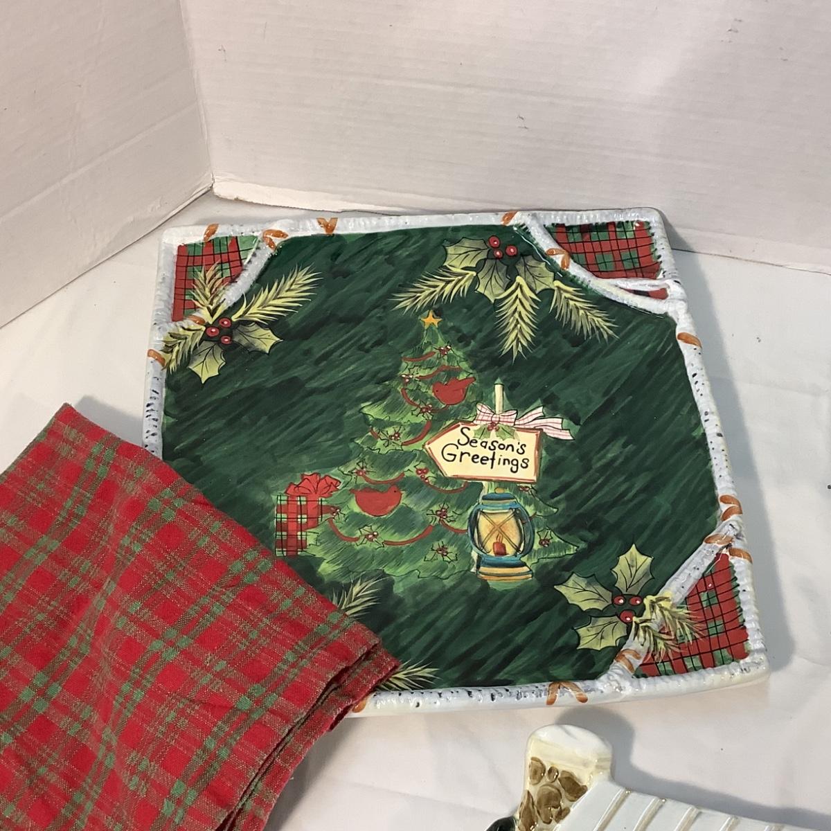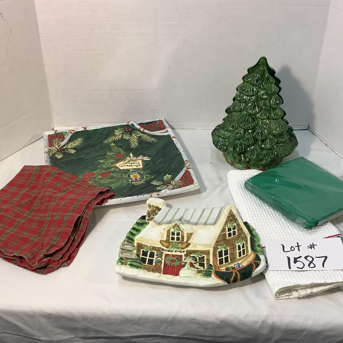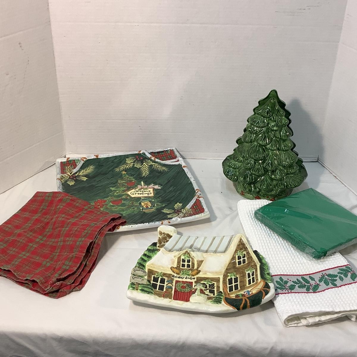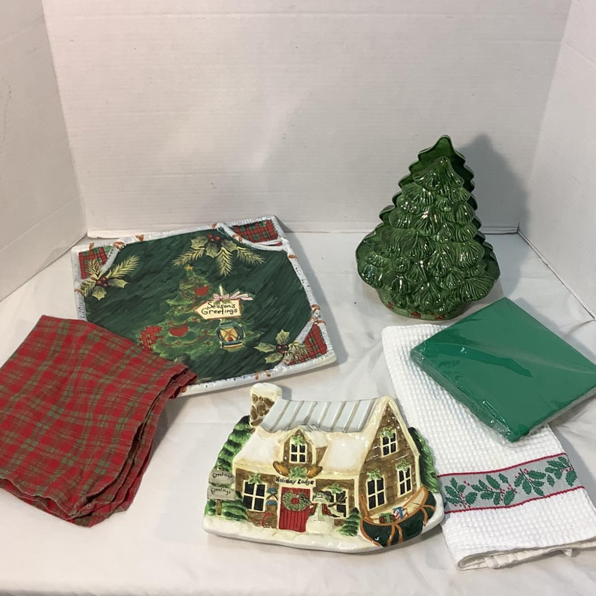Lot 1587. Holiday Platters/Napkin Tree/Tea Towels