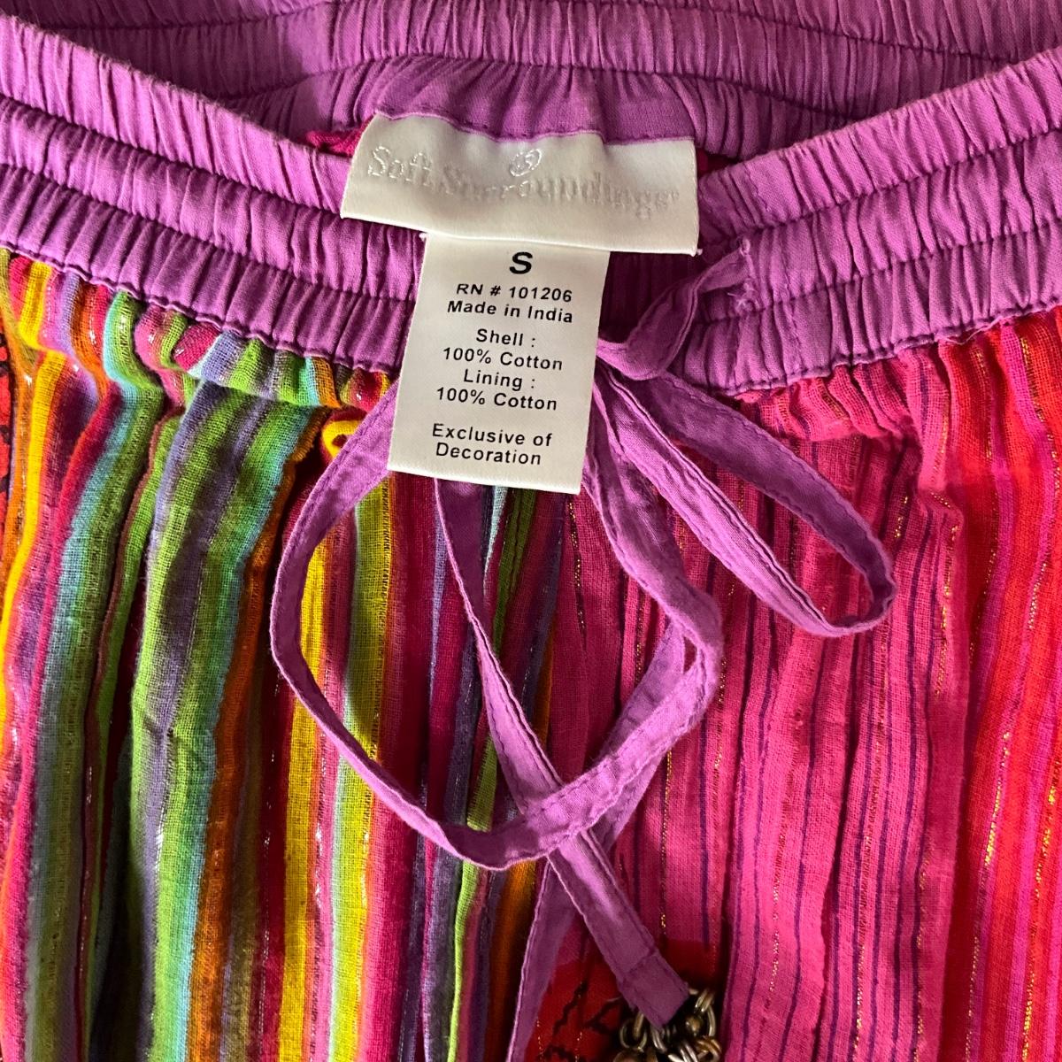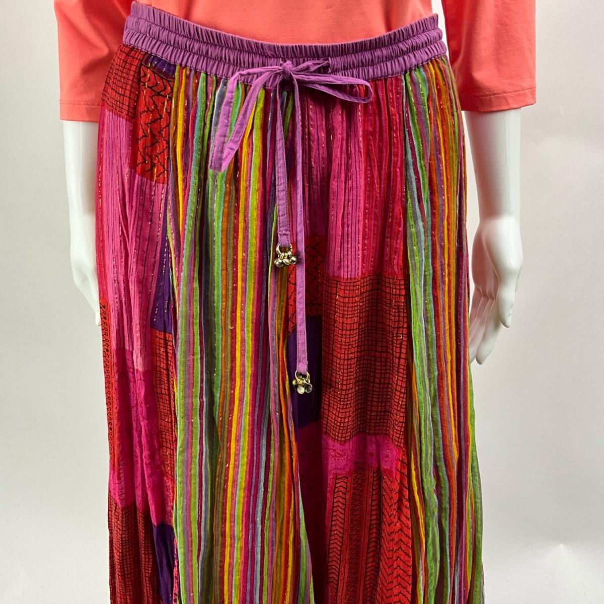 SOFT SURROUNDINGS Multicolored Skirt with tie & bells, 100% Cotton, Elastic Waist, measures hip-hip 14” and length 37”