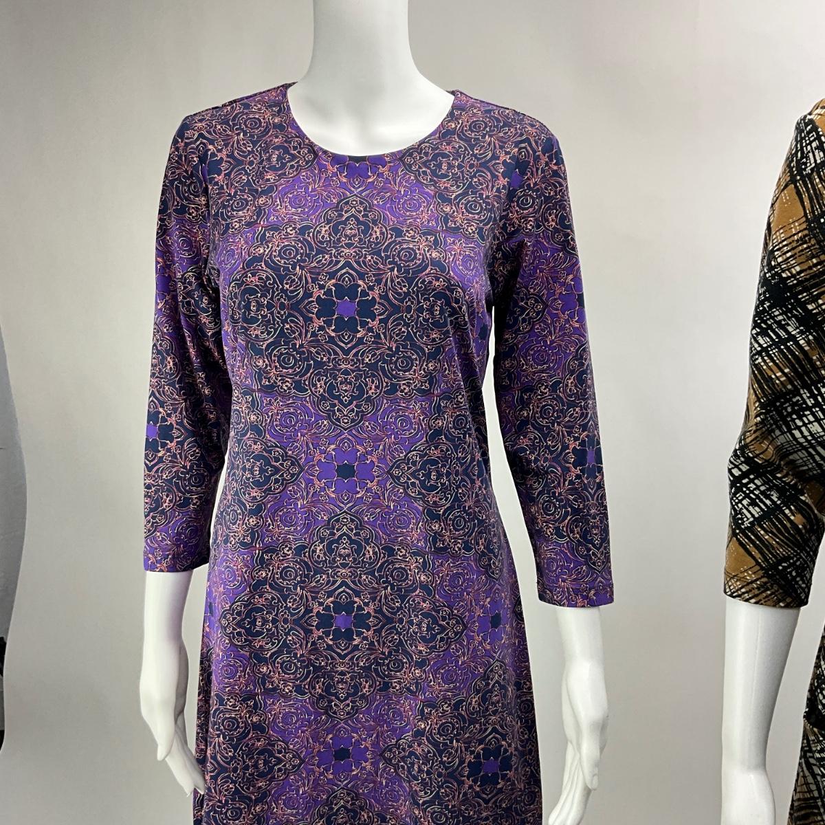 1 ) Purple Floral Abstract measures pit-pit 19”, length 37”
