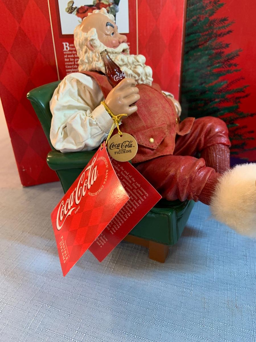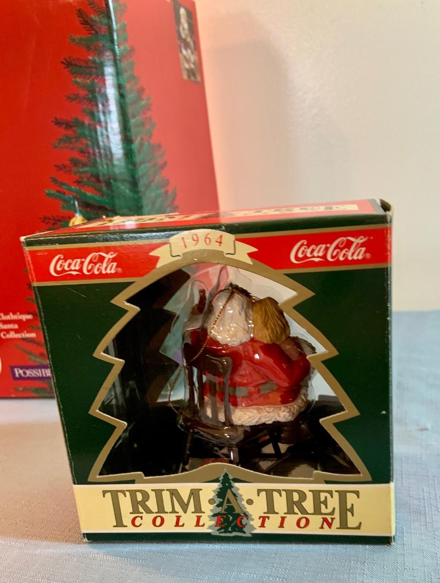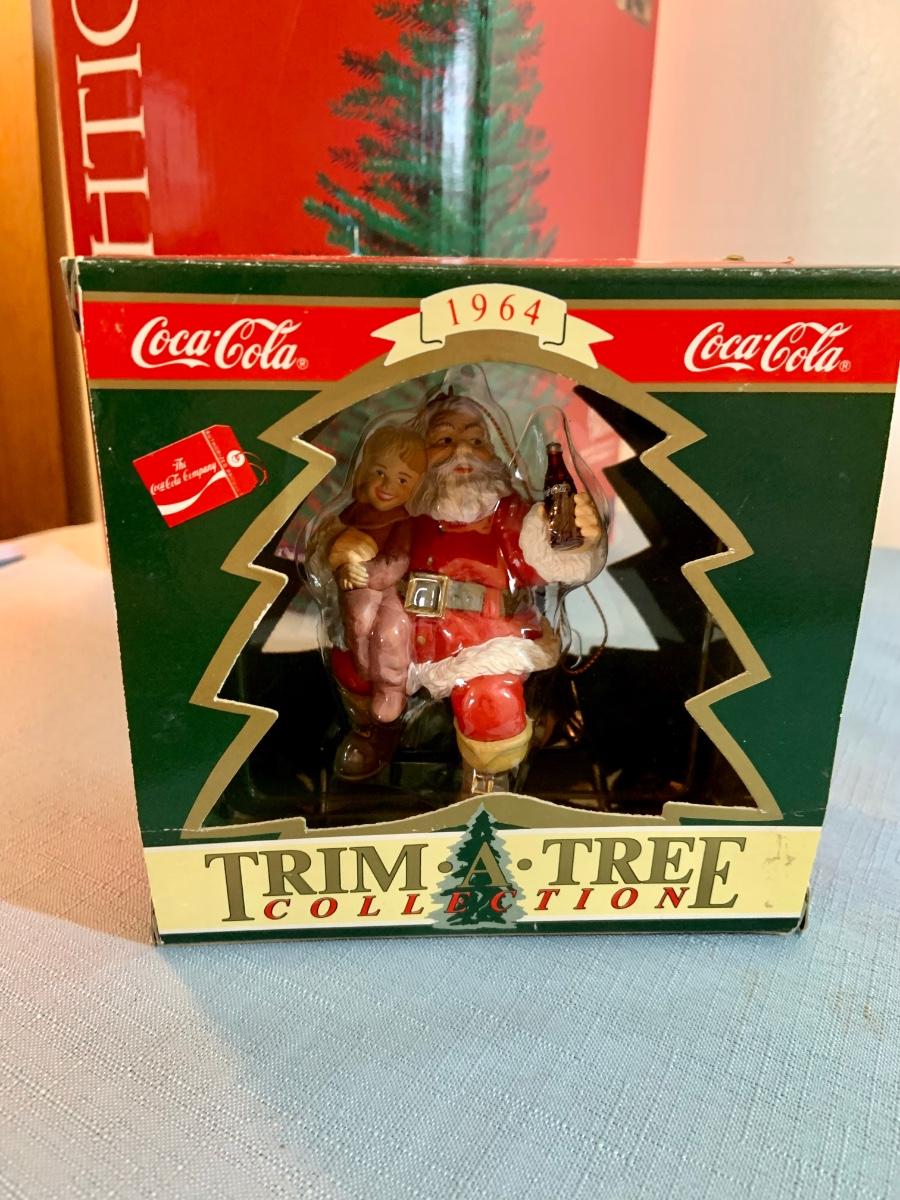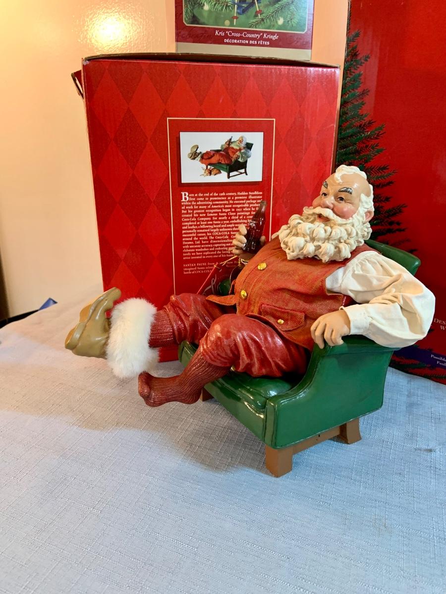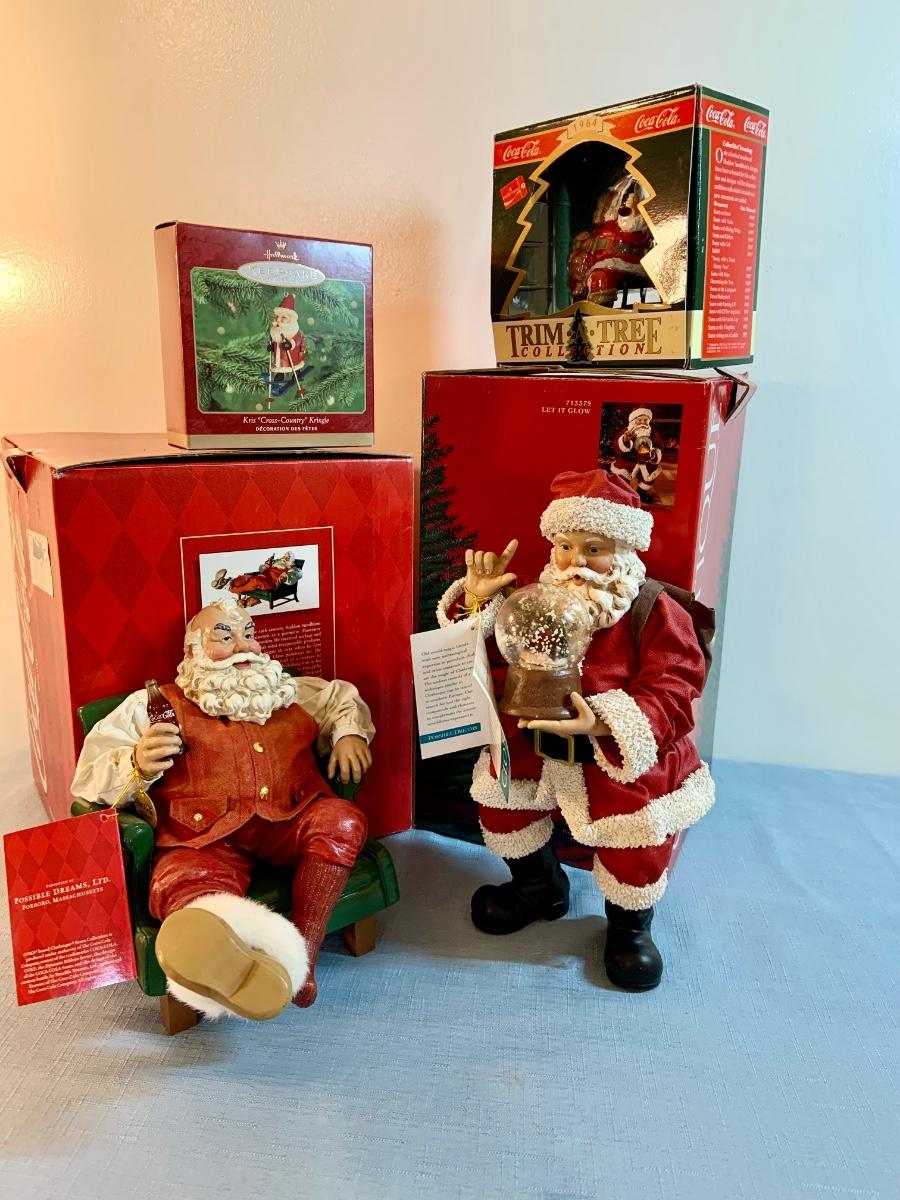 Lot 158G: Two Clothtique Santas Including a Coca Cola Santa; a Coca Cola and Halmark Christmas Ornaments