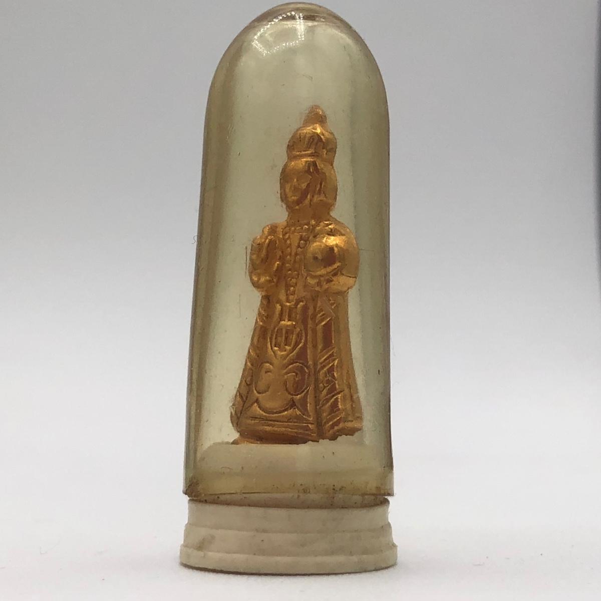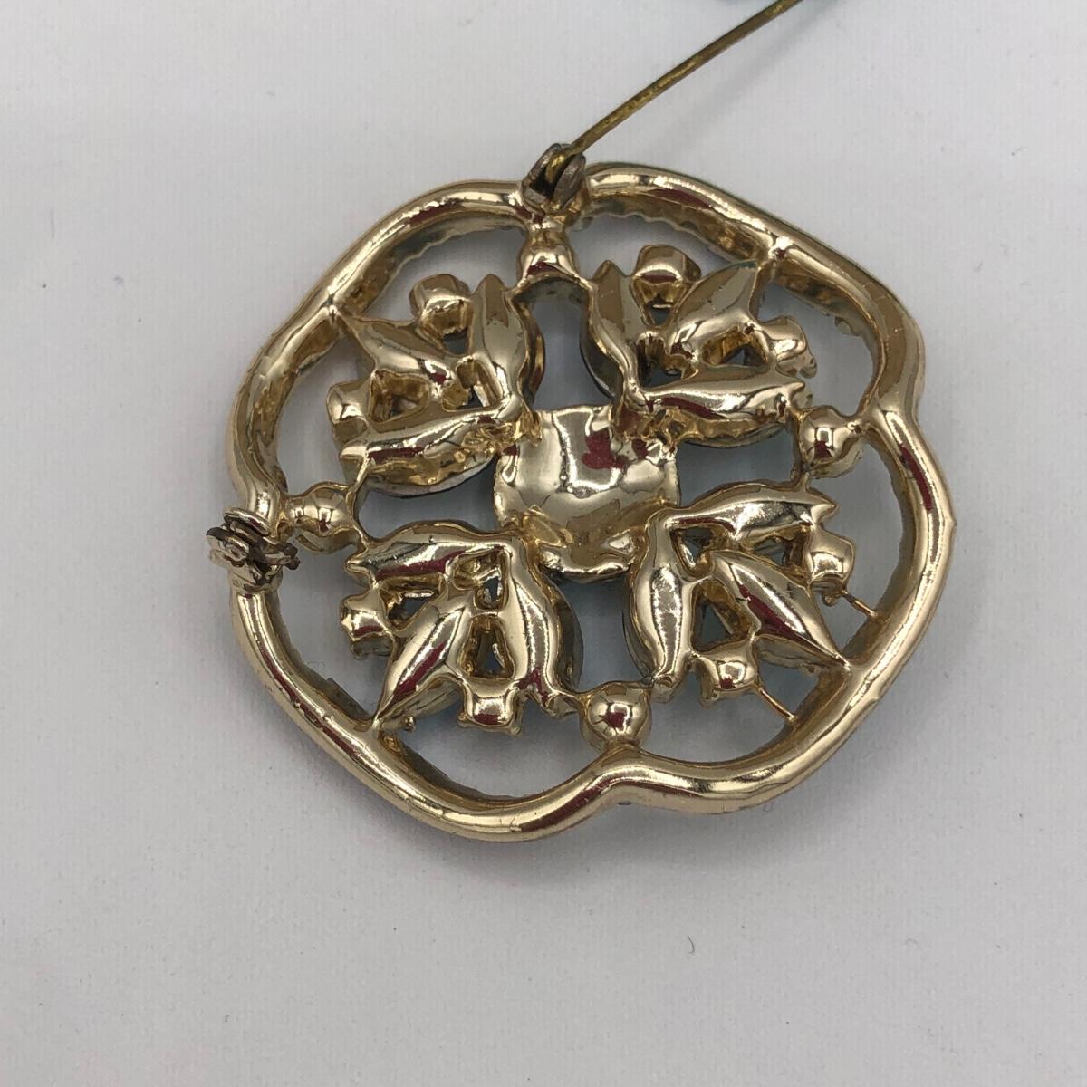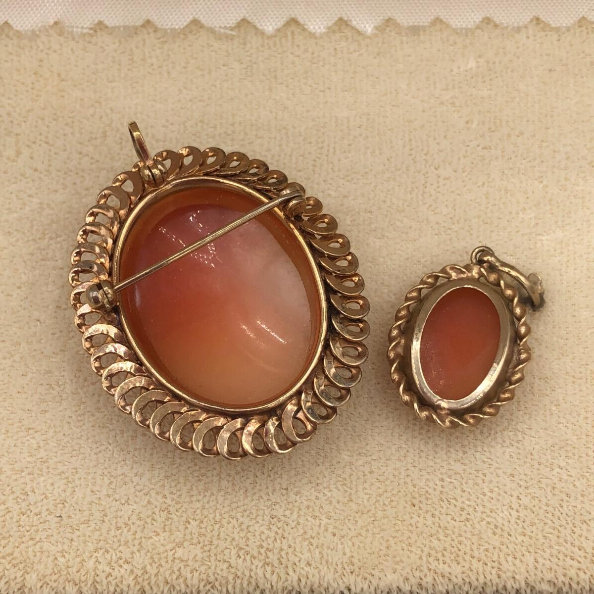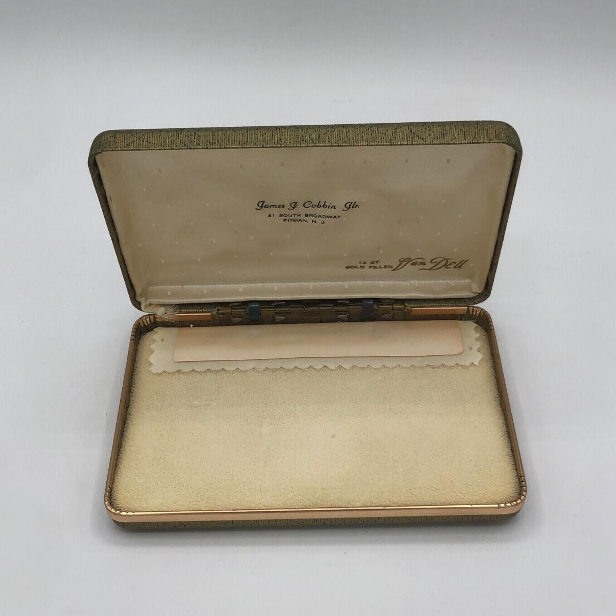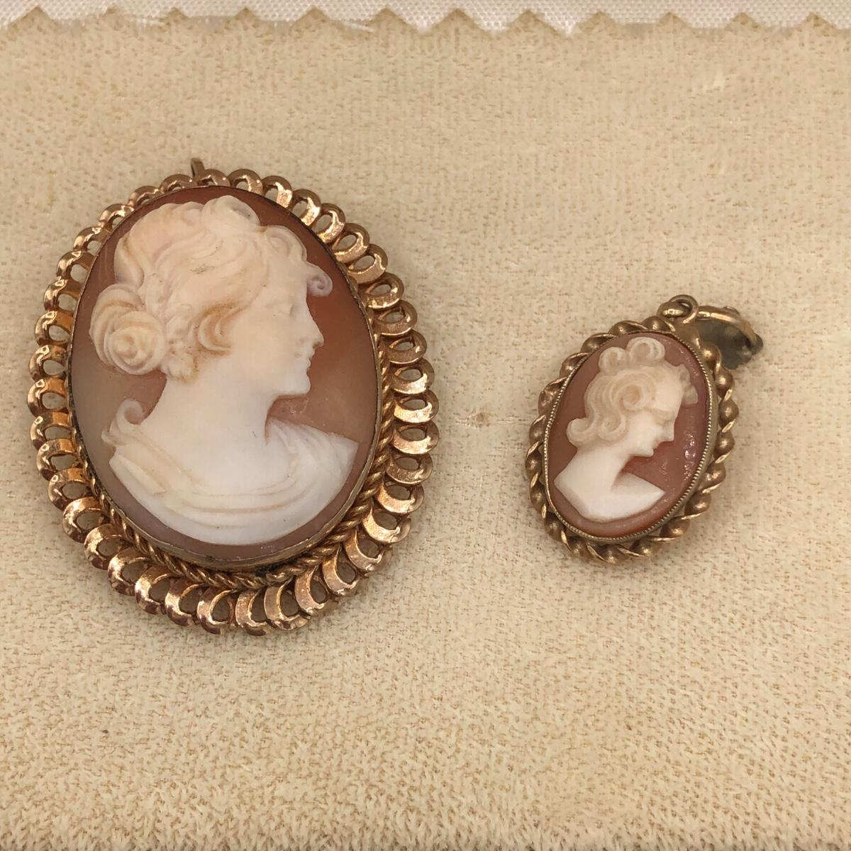 LOT 158J: Vintage Jewelry in Vintage Van Dell Case - Vintage Dodds- W. 30th ST - Textured Silver Tone Cat Head Brooch/Pin, Beaded Rosaries, Cameo Pendant, Brooches & More