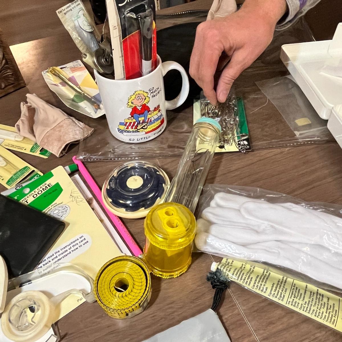 8. Sizes are approximate, you can estimate as our lot number signs are 3.5" long. Also we use an 18" & 36" measuring stick.  We try on certain things to do actual measurements. No guarantees on actual sizes, we try our best!