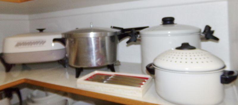 2 TEFLON STEAMERS, ELECTRIC FRYING PAN, ELECTRIC PRESSURE COOKER AND SET OF GERBER STEAK KNIVES