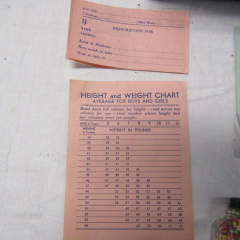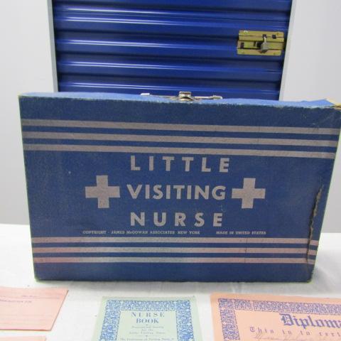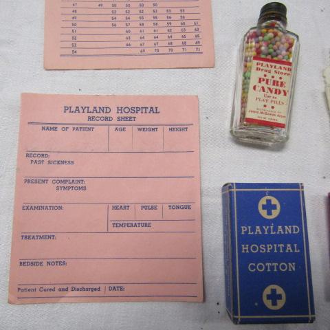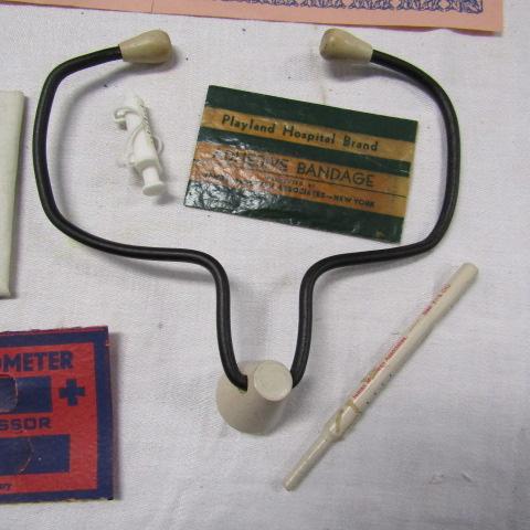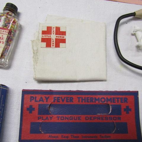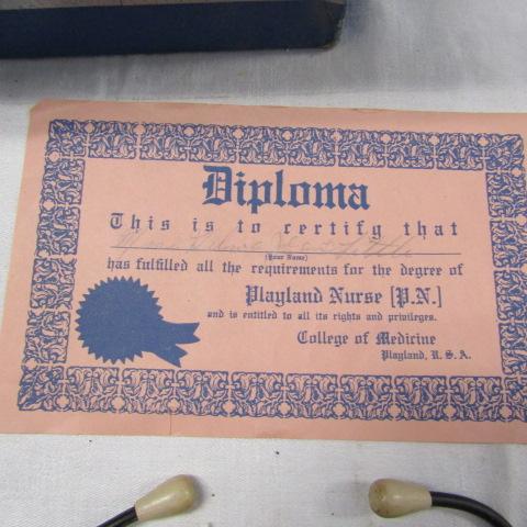 DIPLOMA, PRESCRIPTION SHEETS, CANDY PILLS, SCARF WITH NURSE LOGO, STETHOSCOPE, THERMOMETER AND MORE