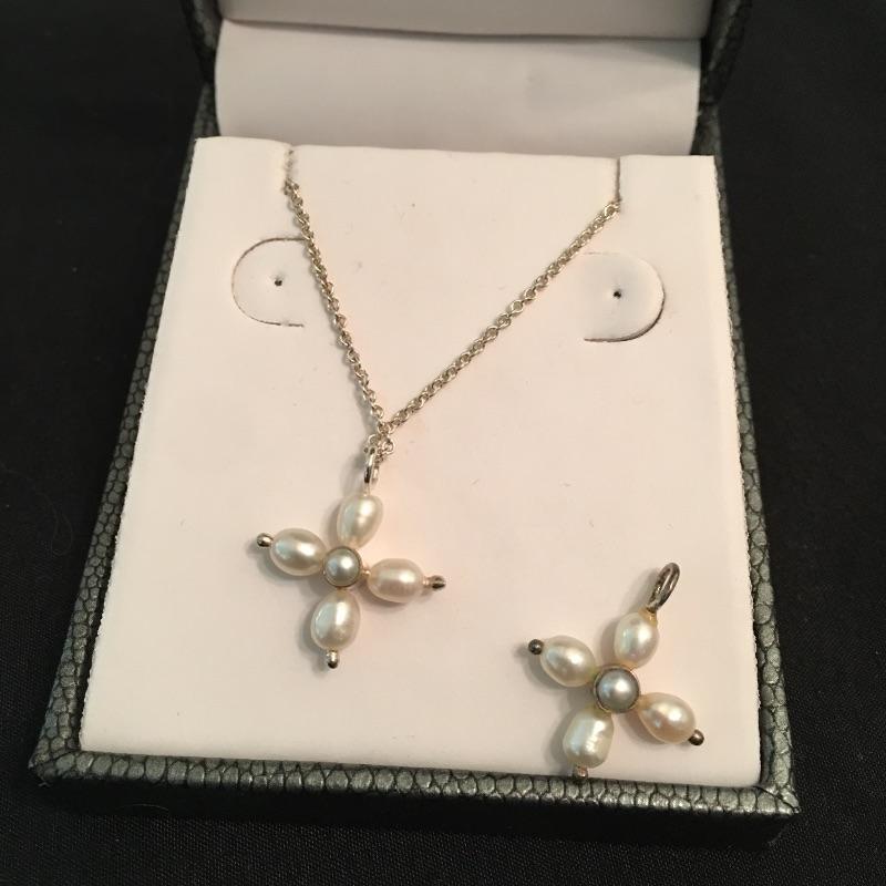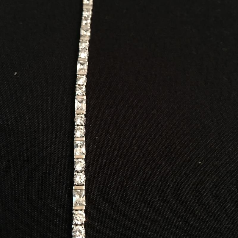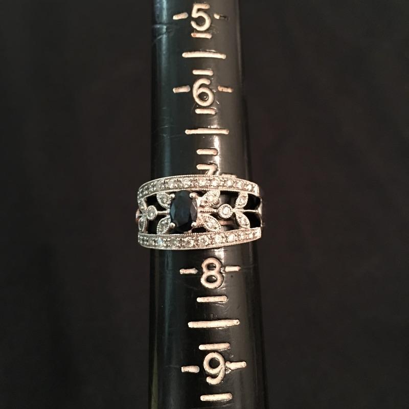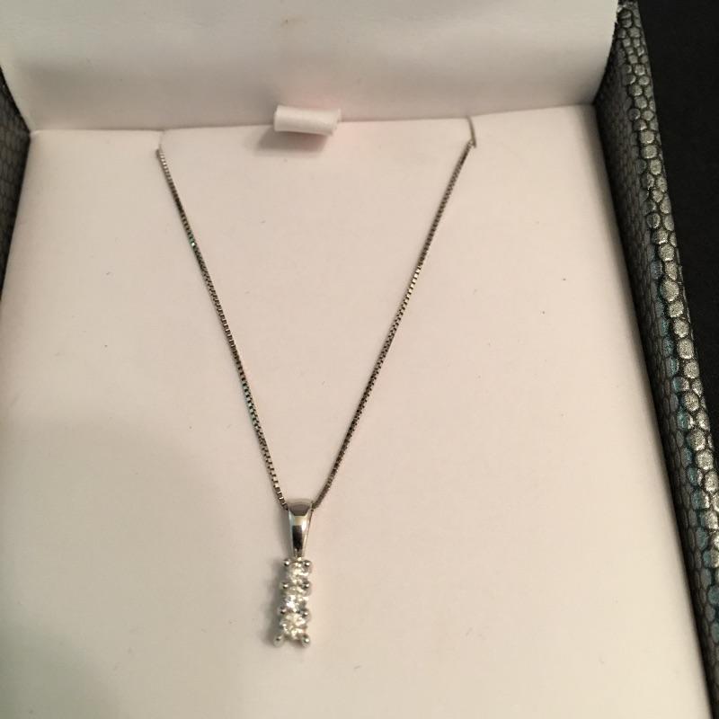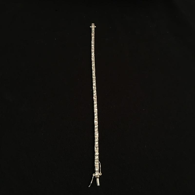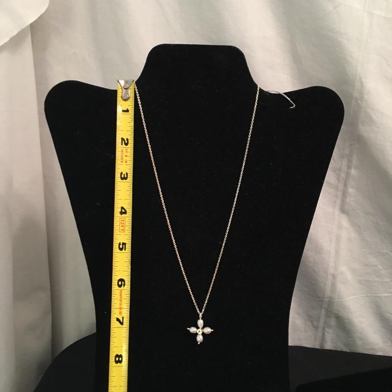 This selection of jewelry will make you dazzle! Lot includes 14k chain necklace with a three diamond 10K pendant, a 14k ring with sapphire colored stone, the clear stones around the ring did not test positive for diamonds or moissanite, Moissanite and 925 bracelet. A Rogers & Holland’s pearl style necklace that comes with an additional pendant. Last but not least, two pairs of stud earrings that are both marked 925.